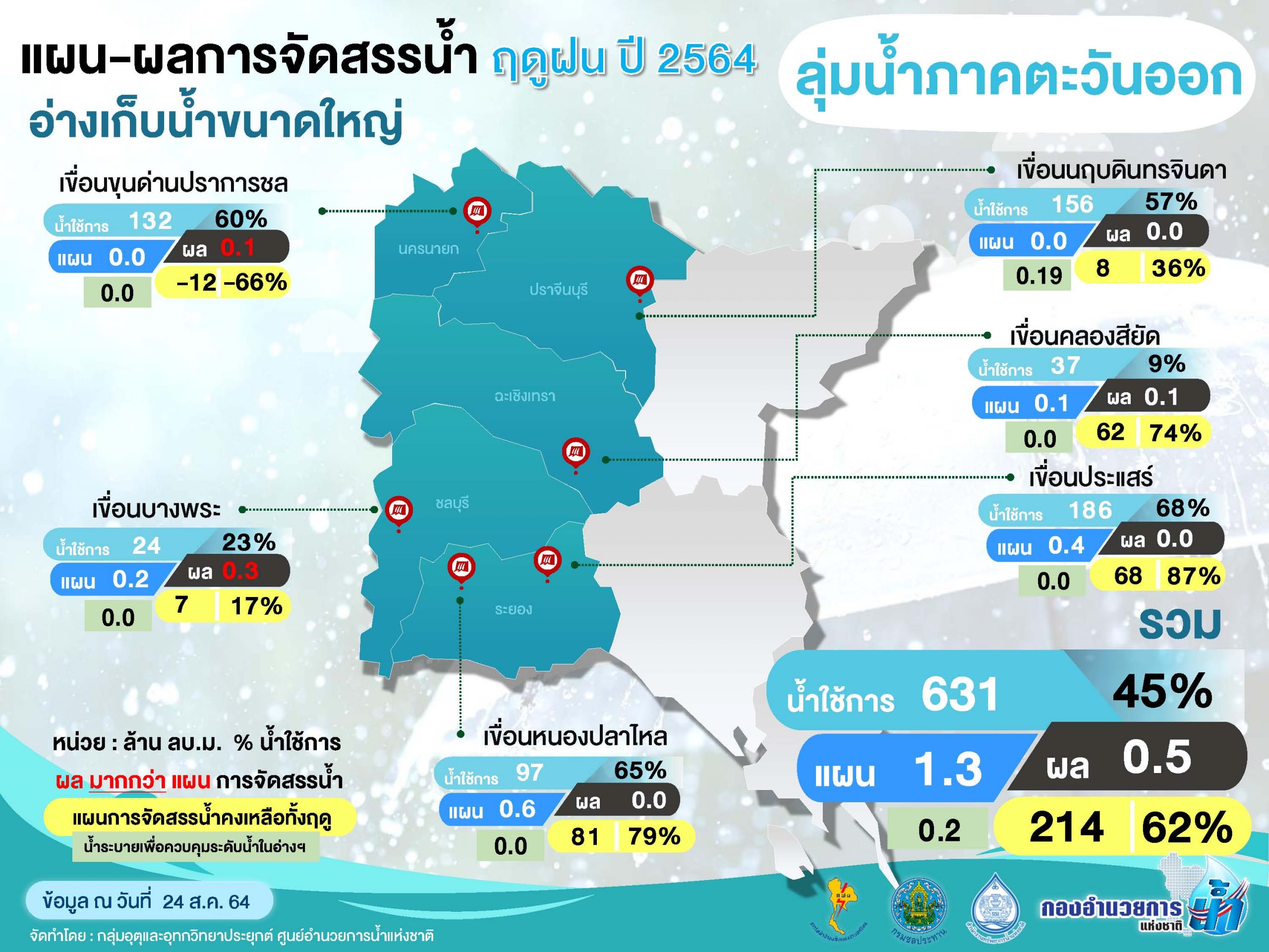 แผน-ผลการจัดสรรนํ้า ฤดูฝน ปี2564 ลุ่มนํ้าภาคตะวันออก
