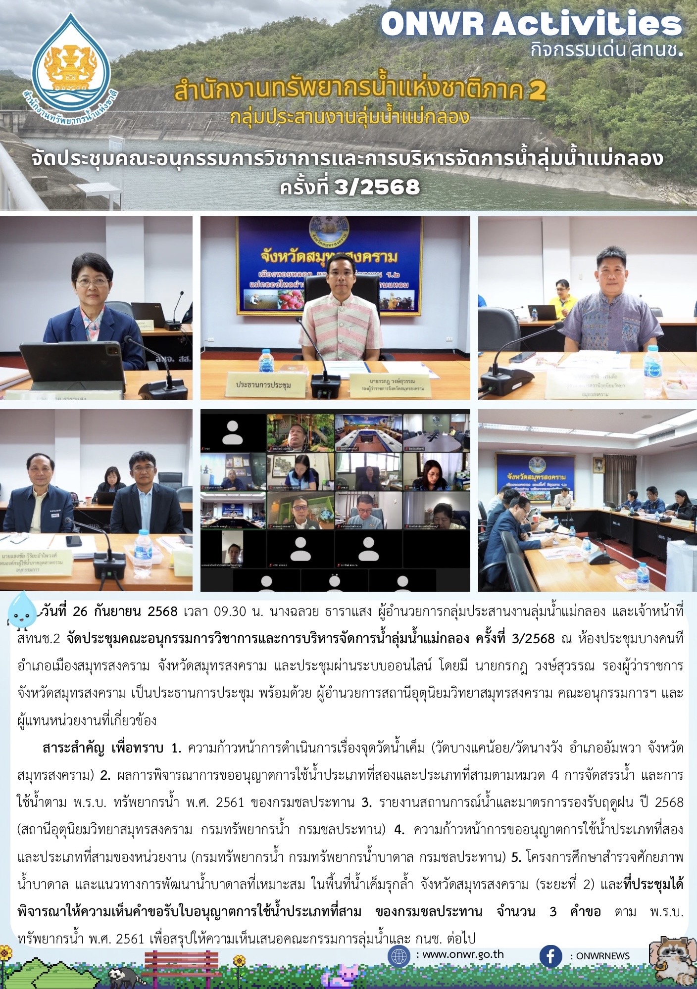 สทนช.2 จัดประชุมคณะอนุกรรมการวิชาการและการบริหารจัดการน้ำลุุ่มน้ำแม่กลอง 9 ตุลาคม 2025 by ปวีณา ประกอบพันธ์