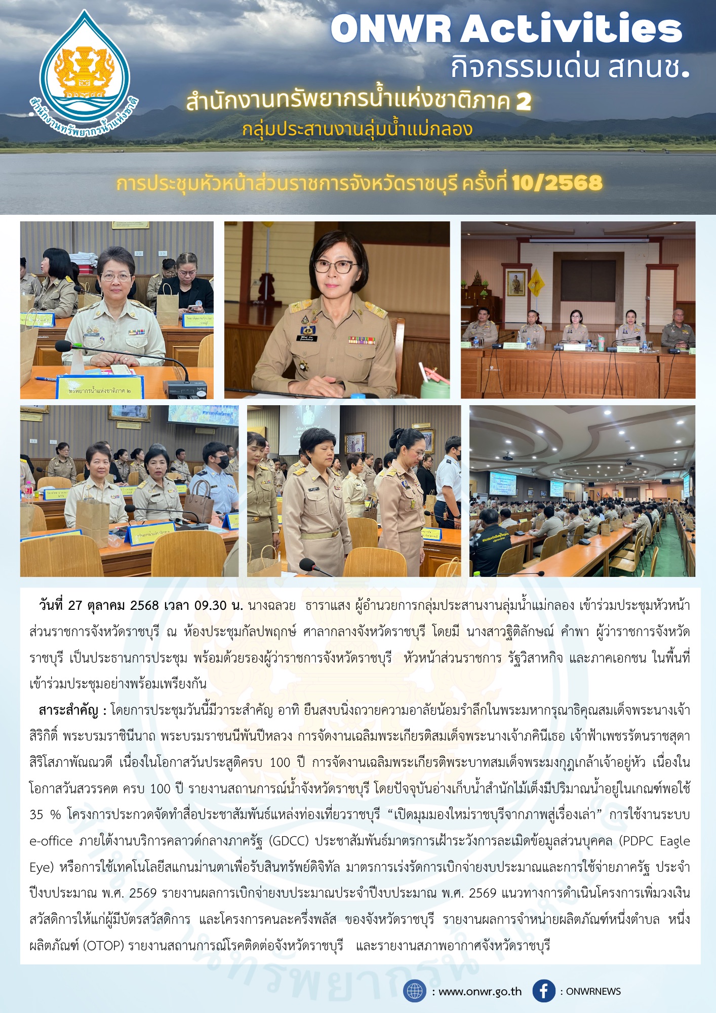 สทนช.2 เข้าร่วมประชุมหัวหน้าส่วนราชการจังหวัดราชบุรี ครั้งที่ 9/2568 9 ตุลาคม 2025 by ปวีณา ประกอบพันธ์