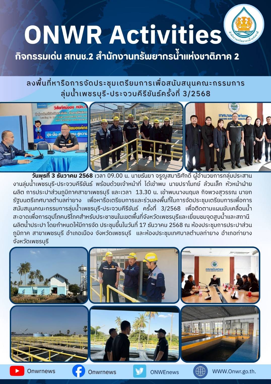 สทนช.2 ลงพื้นที่หารือการจัดประชุมเตรียมการเพื่อสนับสนุนคณะกรรมการลุ่มน้ำเพชรบุรี-ประจวบคีรีขันธ์ ครั้งที่ 3/2568 9 ธันวาคม 2025 by ปวีณา ประกอบพันธ์