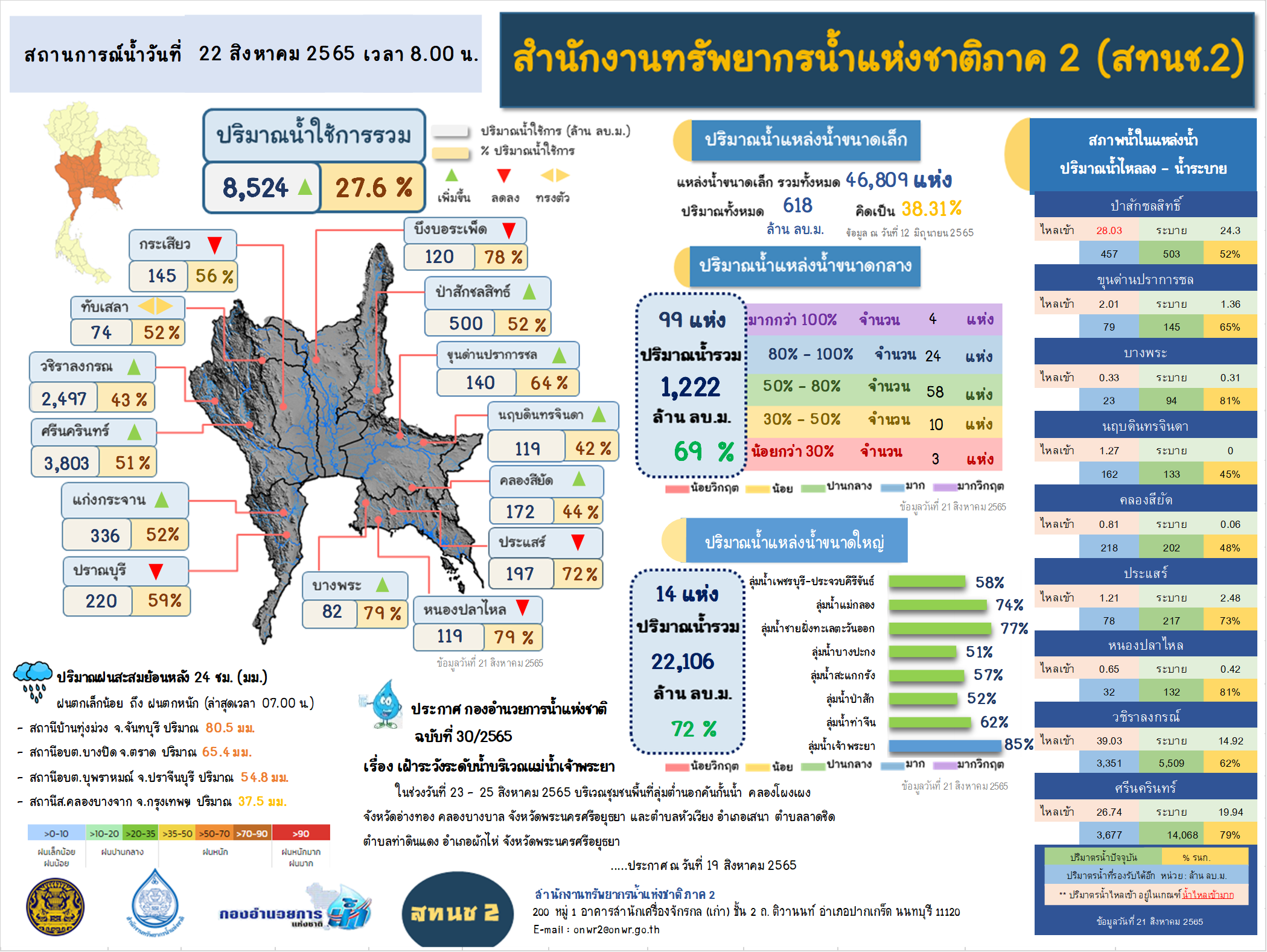 รายงานสถานการณ์น้ำ วันที่ 24 สิงหาคม 2565