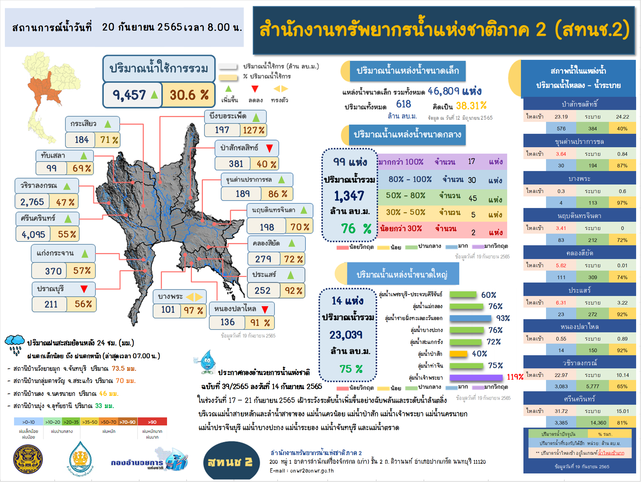 รายงานสถานการณ์น้ำ วันที่ 20 กันยายน 2565