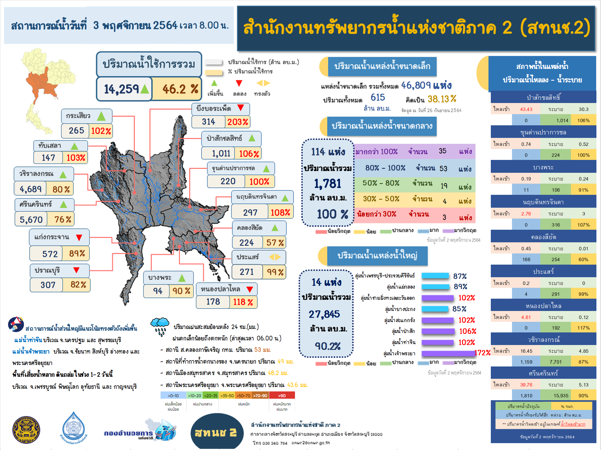 รายงานสถานการณ์น้ำ วันที่ 3 พฤศจิกายน 2564