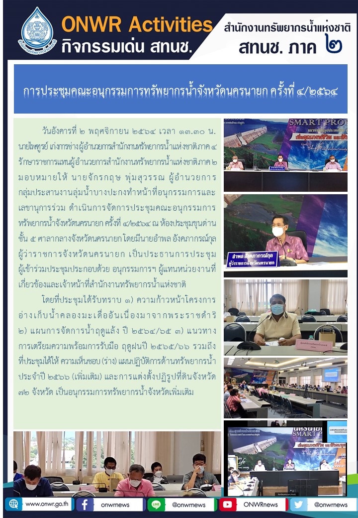 การประชุมคณะอนุกรรมการทรัพยากรน้ำจังหวัดนครนายก ครั้งที่ 4/2564