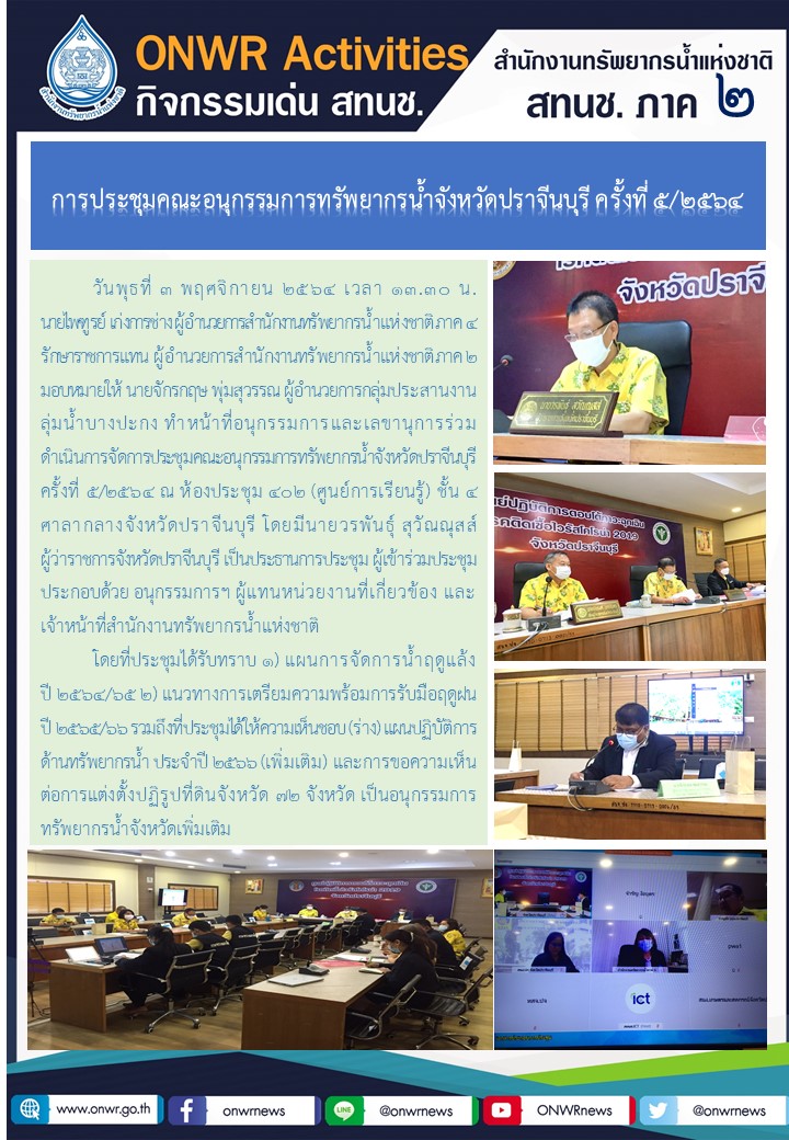 การประชุมคณะอนุกรรมการทรัพยากรน้ำจังหวัดปราจีนบุรี ครั้งที่ 5/2564