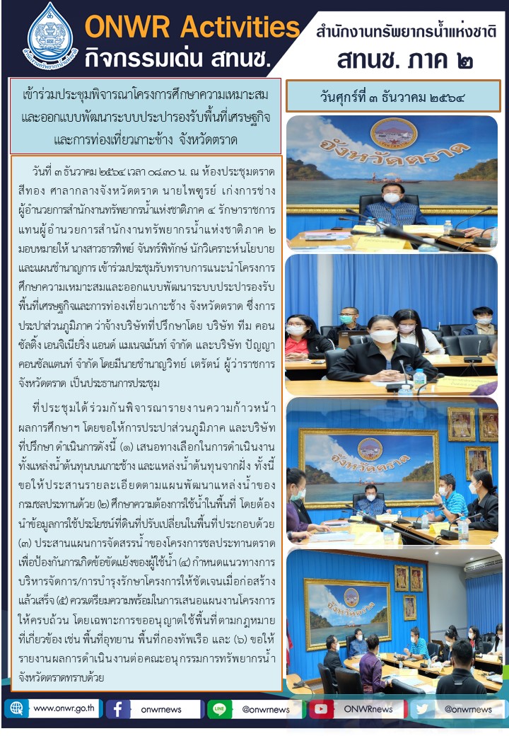 ประชุมพิจารณาโครงการศึกษาความเหมาะสมและออกแบบพัฒนาระบบประปารองรับพื้นที่เศรษฐกิจและการท่องเที่ยวเกาะช้าง จังหวัดตราด 4 ธันวาคม 2021 by ชลธิชา