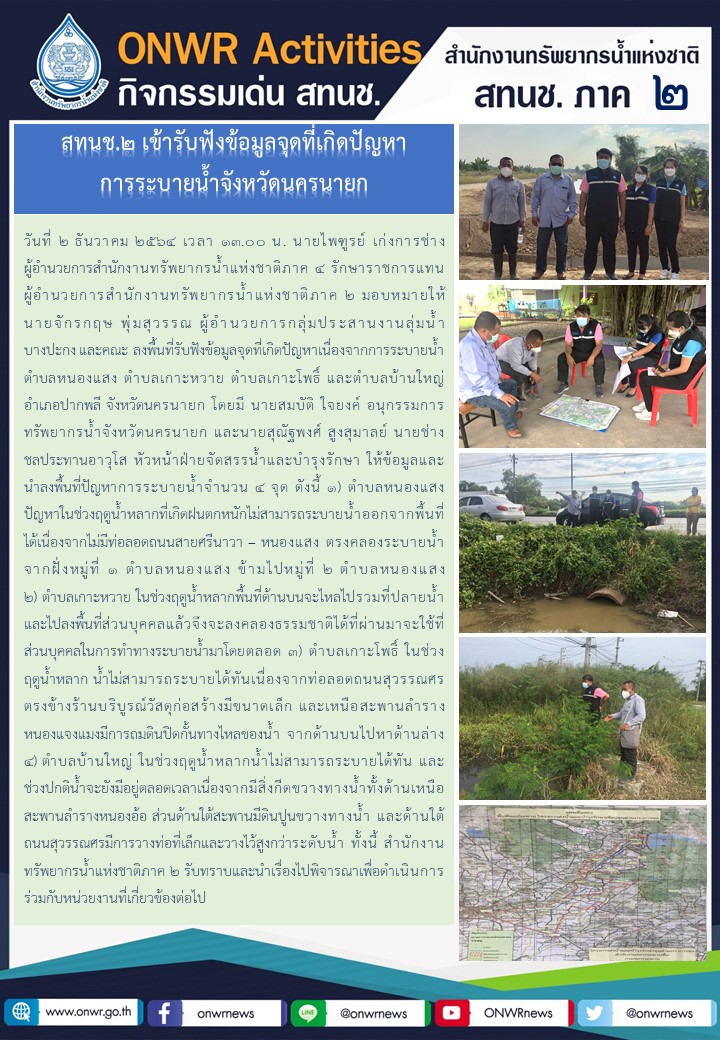 ผู้อำนวยการกลุ่มประสานงานลุ่มน้ำบางปะกง เข้ารับฟังข้อมูลจุดที่เกิดปัญหาการระบายน้ำจังหวัดนครนายก 2 ธันวาคม 2021 by ชลธิชา