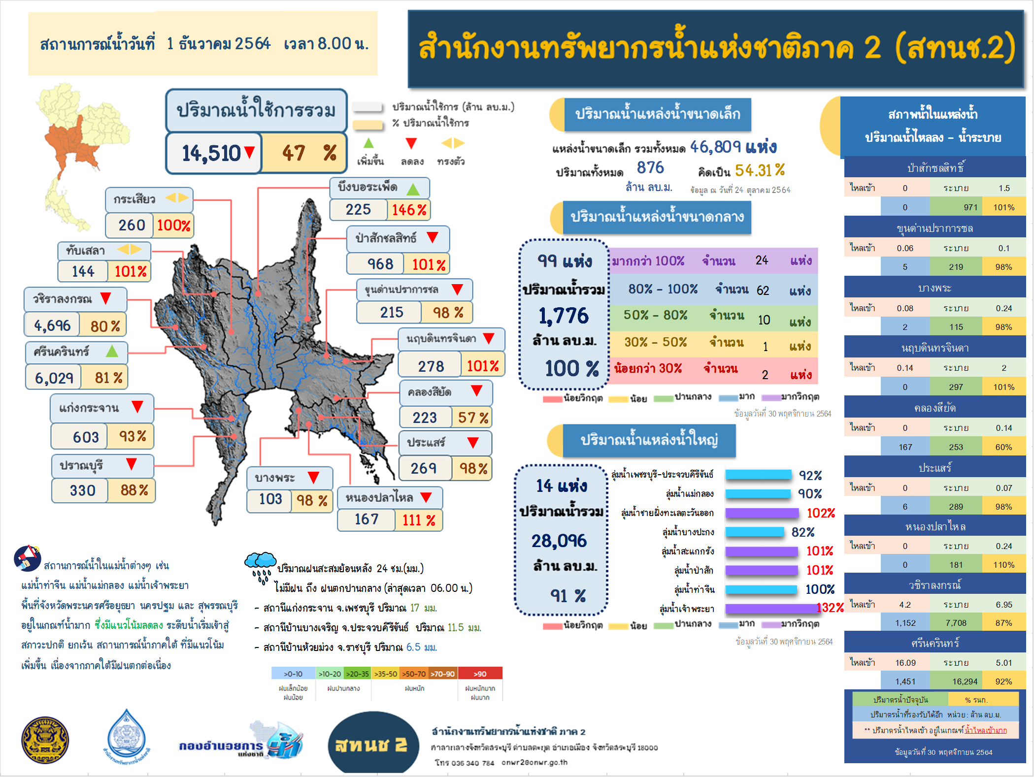 รายงานสถานการณ์น้ำ วันที่ 1 ธันวาคม 2564