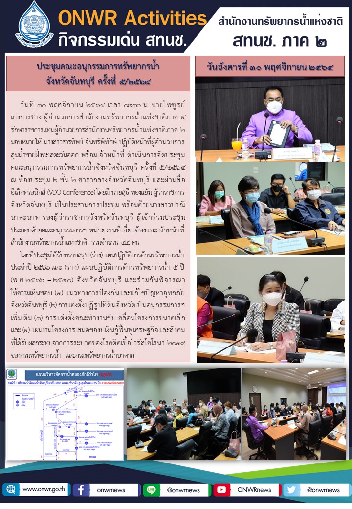 การประชุมคณะอนุกรรมการทรัพยากรน้ำจังหวัดจันทบุรี ครั้งที่ 5/2564