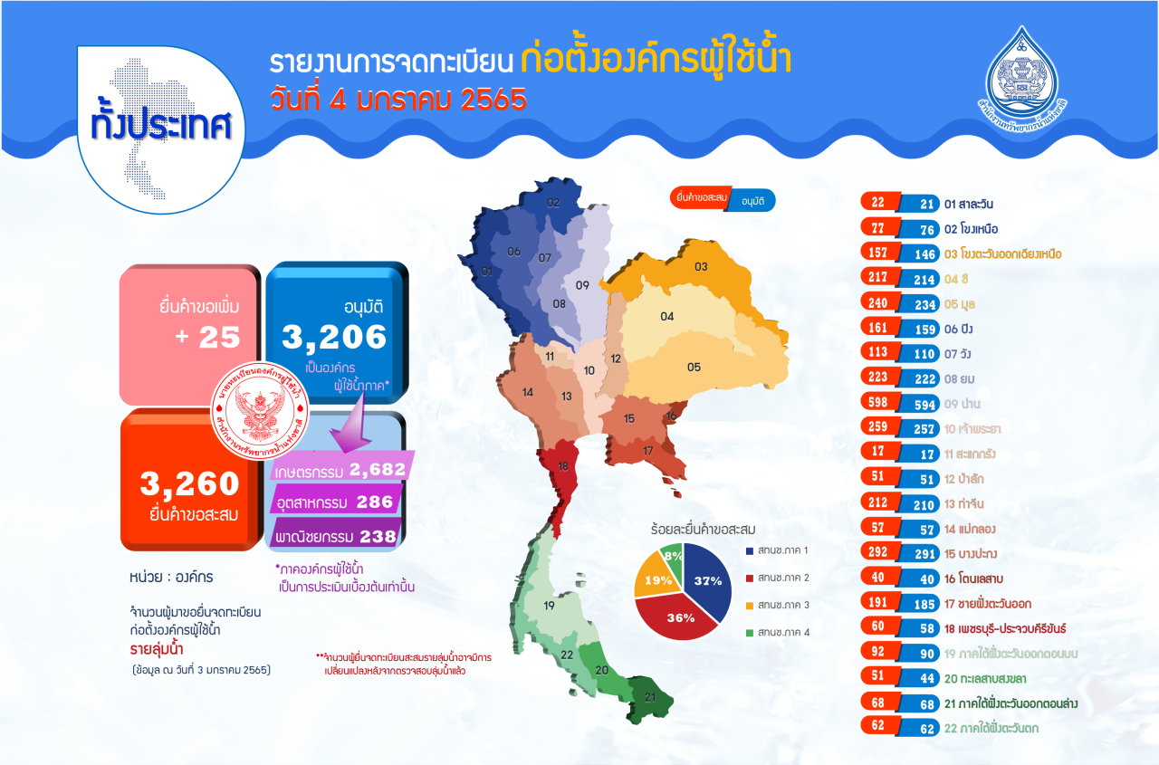 รายงานการจดทะเบียนก่อตั้งองค์กรผู้ใช้น้ำ ประจำวันที่ 4 มกราคม 2565