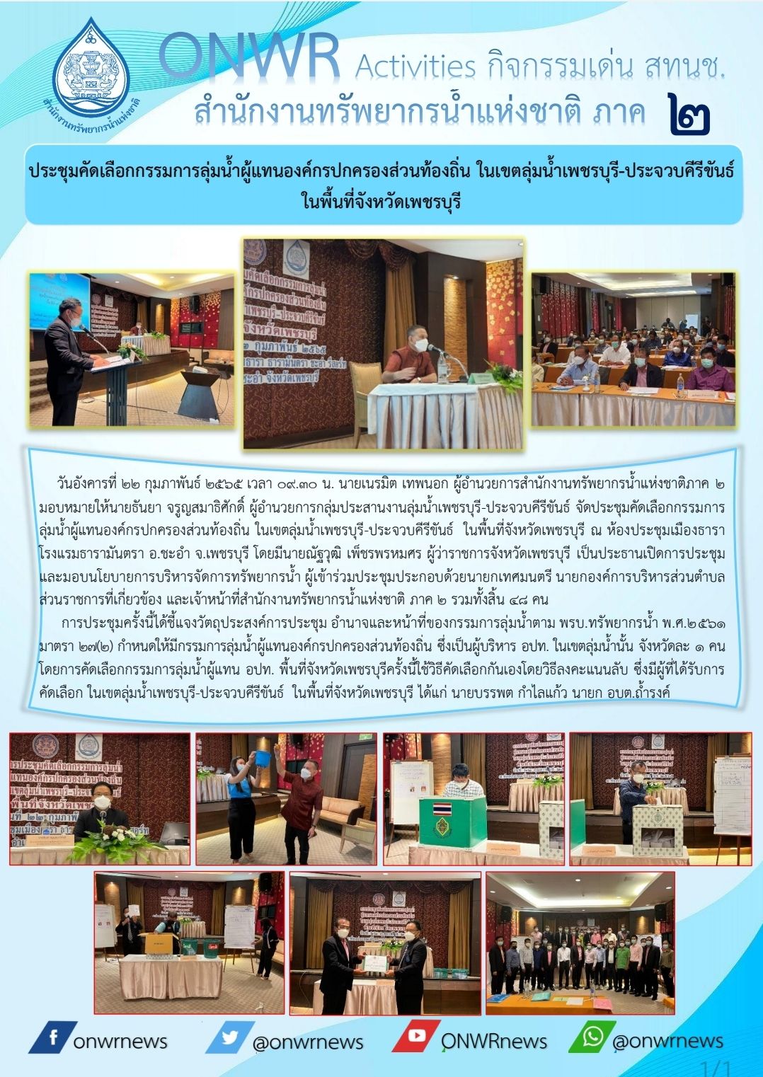การคัดเลือกผู้แทนองค์กรปกครองส่วนท้องถิ่นลุ่มน้ำเพชรบุรี – ประจวบคีรีขันธ์ ในพื้นที่จังหวัดเพชรบุรี 23 กุมภาพันธ์ 2022 by ชลธิชา เมฆนิล