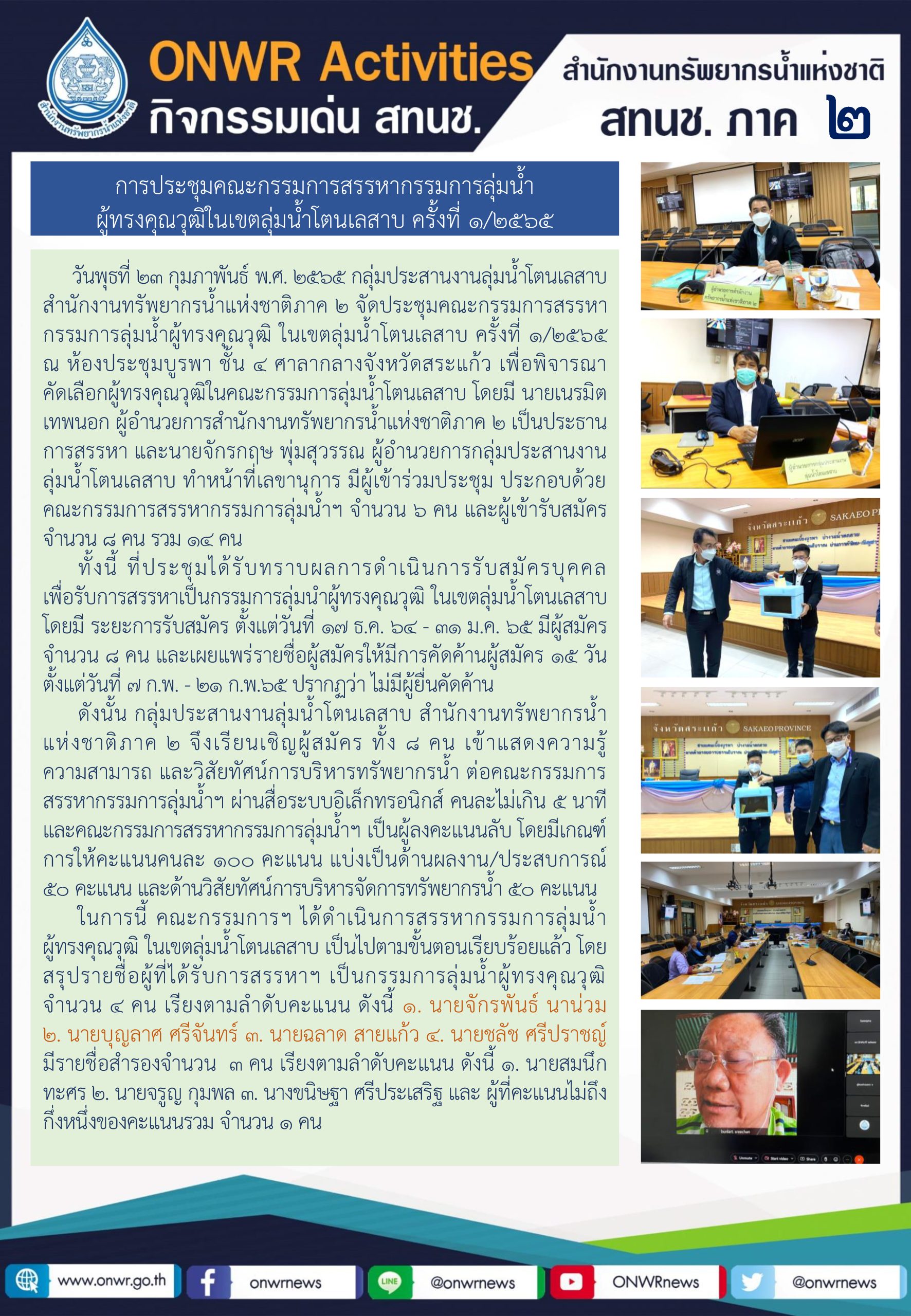 การประชุมคณะกรรมการสรรหากรรมการลุ่มน้ำผู้ทรงคุณวุฒิ ในเขตลุ่มน้ำโตนเลสาบ ครั้งที่ 1/2565 ณ จังหวัดสระแก้ว 24 กุมภาพันธ์ 2022 by ชลธิชา เมฆนิล