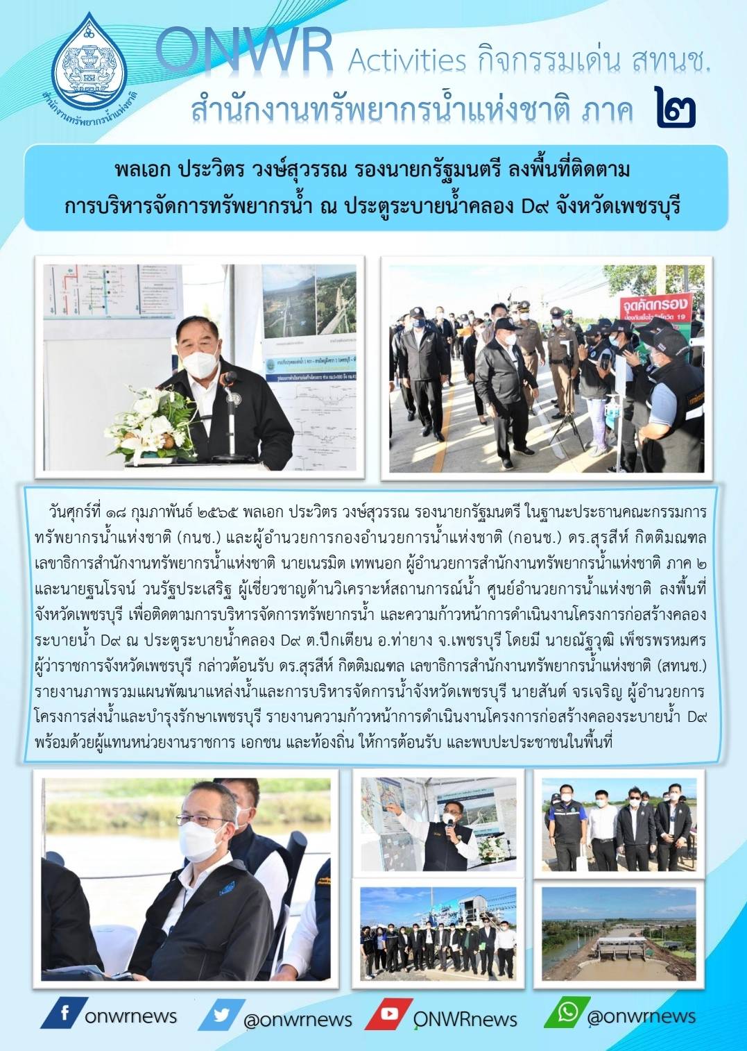 (18 กุมภาพันธ์ 2565) รองนายกฯ พลเอก ประวิตร วงษ์สุวรรณ ลงพื้นที่ติดตามการบริหารจัดการทรัพยากรน้ำ ณ ประตูระบายน้ำ D9 จังหวัดเพชรบุรี 19 กุมภาพันธ์ 2022 by ชลธิชา เมฆนิล