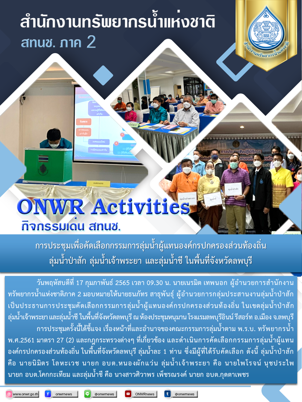 การคัดเลือกกรรมการลุ่มน้ำ ผู้แทนองค์กรปกครองส่วนท้องถิ่น พื้นที่จังหวัดลพบุรี 18 กุมภาพันธ์ 2022 by ชลธิชา เมฆนิล