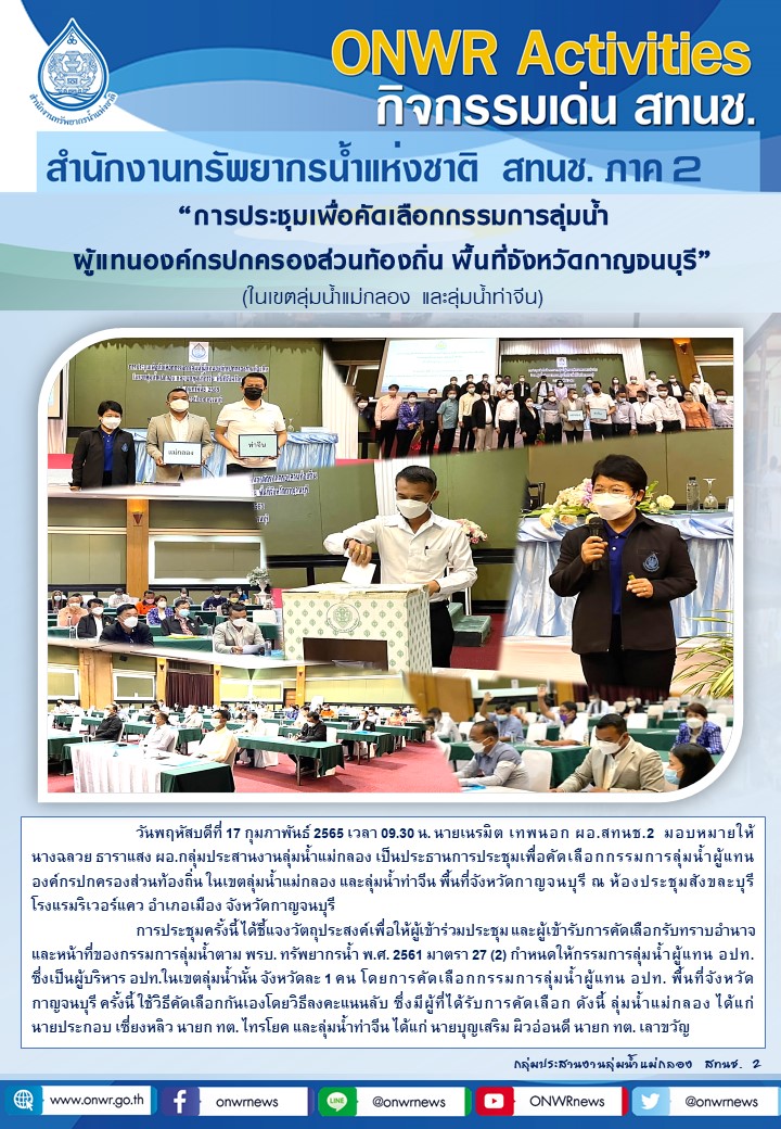 การประชุมเชิงปฏิบัติการเพื่อคัดเลือกกรรมการลุ่มน้ำผู้แทนองค์กรปกครองส่วนท้องถิ่น พื้นที่จังหวัดกาญจนบุรี 18 กุมภาพันธ์ 2022 by ชลธิชา เมฆนิล