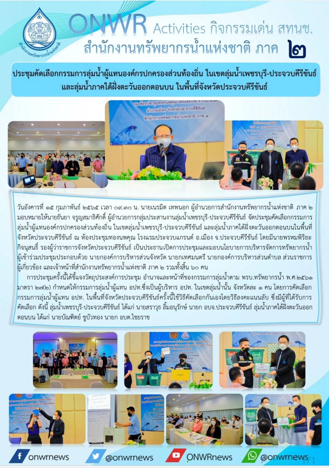 การคัดเลือกองค์กรปกครองส่วนท้องถิ่น ผู้แทนกรรมการลุ่มน้ำเพชรบุรี-ประจวบคีรีขันธ์ และลุ่มน้ำภาคใต้ตะวันออกตอนบน พื้นที่จังหวัดประจวบคีรีขันธ์ 16 กุมภาพันธ์ 2022 by ชลธิชา เมฆนิล