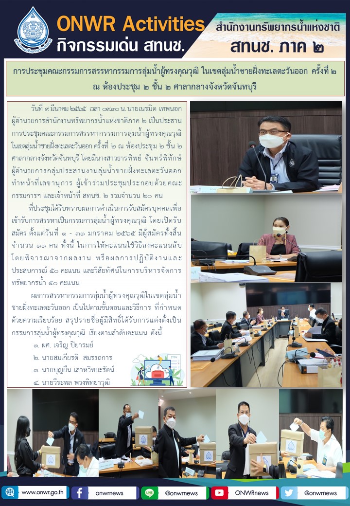 การประชุมคณะกรรมการสรรหากรรมการลุ่มน้ำผู้ทรงคุณวุฒิ ในเขตลุ่มน้ำบางปะกง ครั้งที่ ๑/๒๕๖๕ 11 มีนาคม 2022 by ชลธิชา เมฆนิล