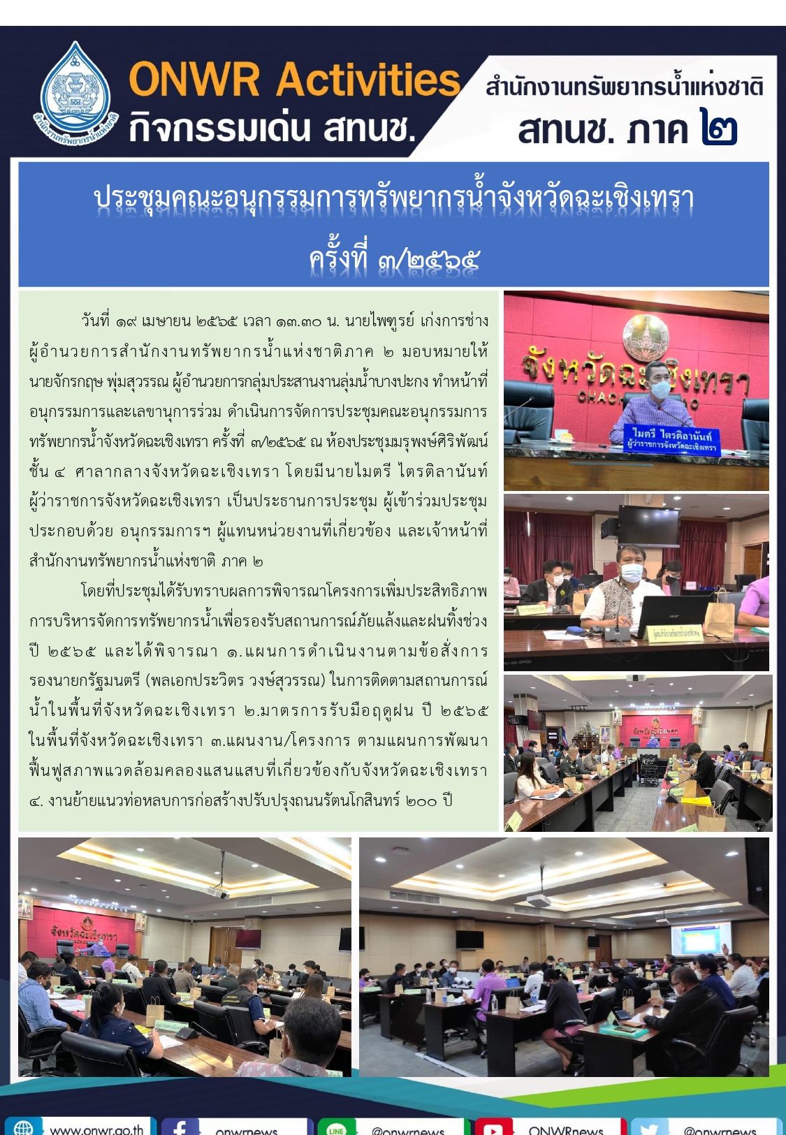 การจัดประชุมและเข้าร่วมการประชุมคณะอนุกรรมการทรัพยากรน้ำจังหวัดฉะเชิงเทรา ครั้งที่ 3/2565 ณ ศาลากลางจังหวัดฉะเชิงเทรา 20 เมษายน 2022 by ชลธิชา เมฆนิล