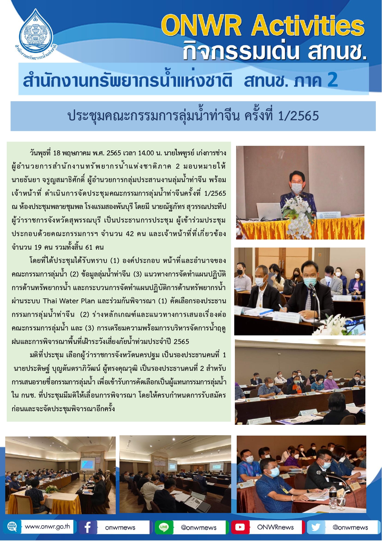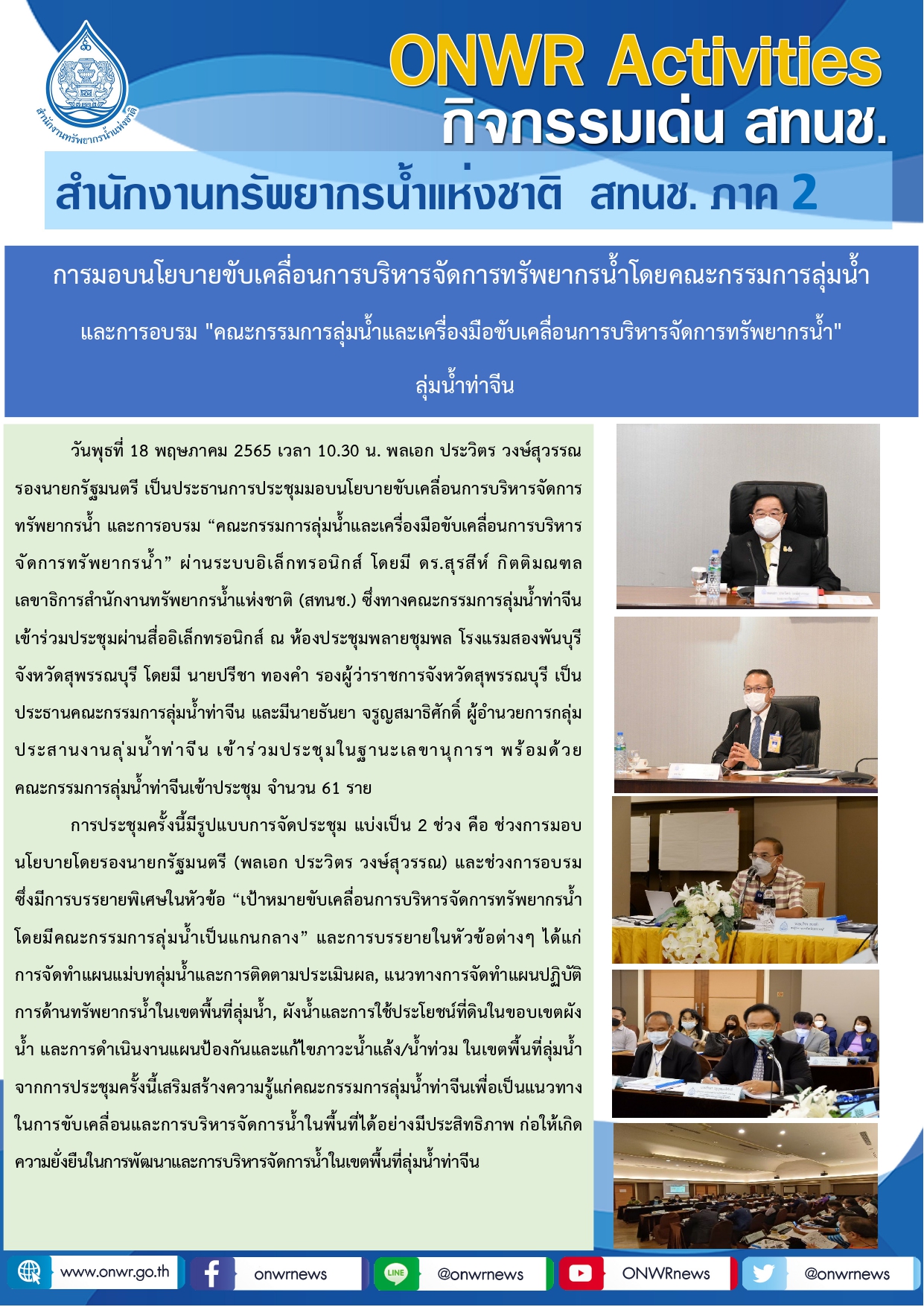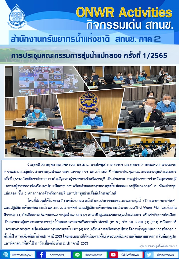 (ลุ่มน้ำท่าจีน) การประชุมรับมอบนโยบายขับเคลื่อนการบริหารจัดการทรัพยากรน้ำโดย “คณะกรรมการลุ่มน้ำ และการอบรมคณะกรรมการลุ่มน้ำและเครื่องมือขับเคลื่อนการจัดการทรัพยากรน้ำ” 20 พฤษภาคม 2022 by ชลธิชา