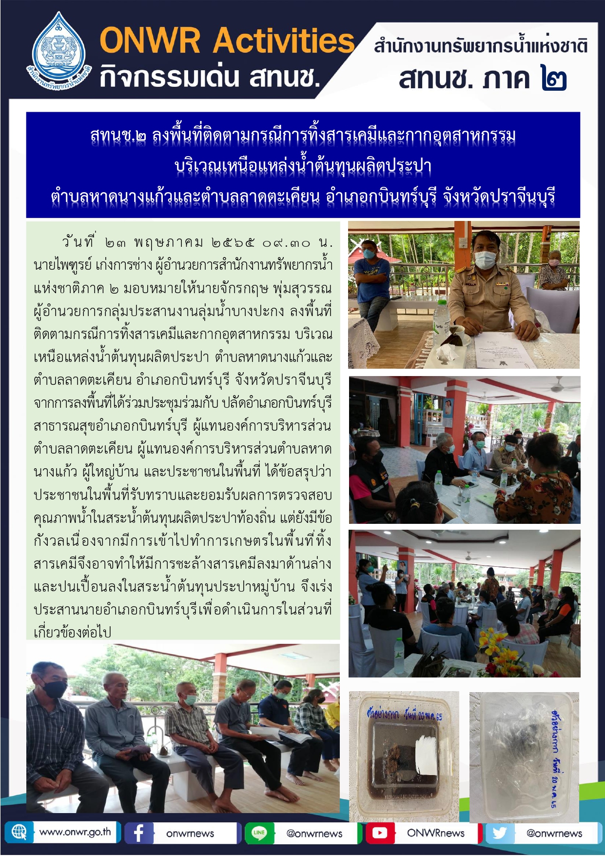 กลุ่มประสานงานลุ่มน้ำบางปะกง ลงพื้นที่ติดตามกรณีการทิ้งสารเคมีและกากอุตสาหกรรม บริเวณเหนือแหล่งน้ำต้นทุนผลิตประปา ตำบลหาดนางแก้วและตำบลลาดตะเคียน อำเภอกบินทร์บุรี จังหวัดปราจีนบุรี 24 พฤษภาคม 2022 by ชลธิชา