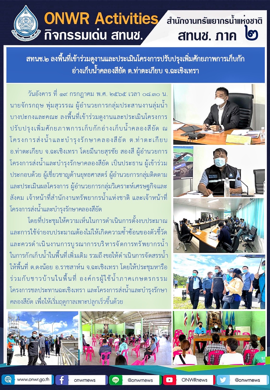 การลงพื้นที่เข้าร่วมดูงานและประเมินโครงการปรับปรุงเพิ่มศักยภาพการเก็บกักอ่างเก็บน้ำคลองสียัด ต.ท่าตะเกียบ จ.ฉะเชิงเทรา 21 กรกฎาคม 2022 by ชลธิชา