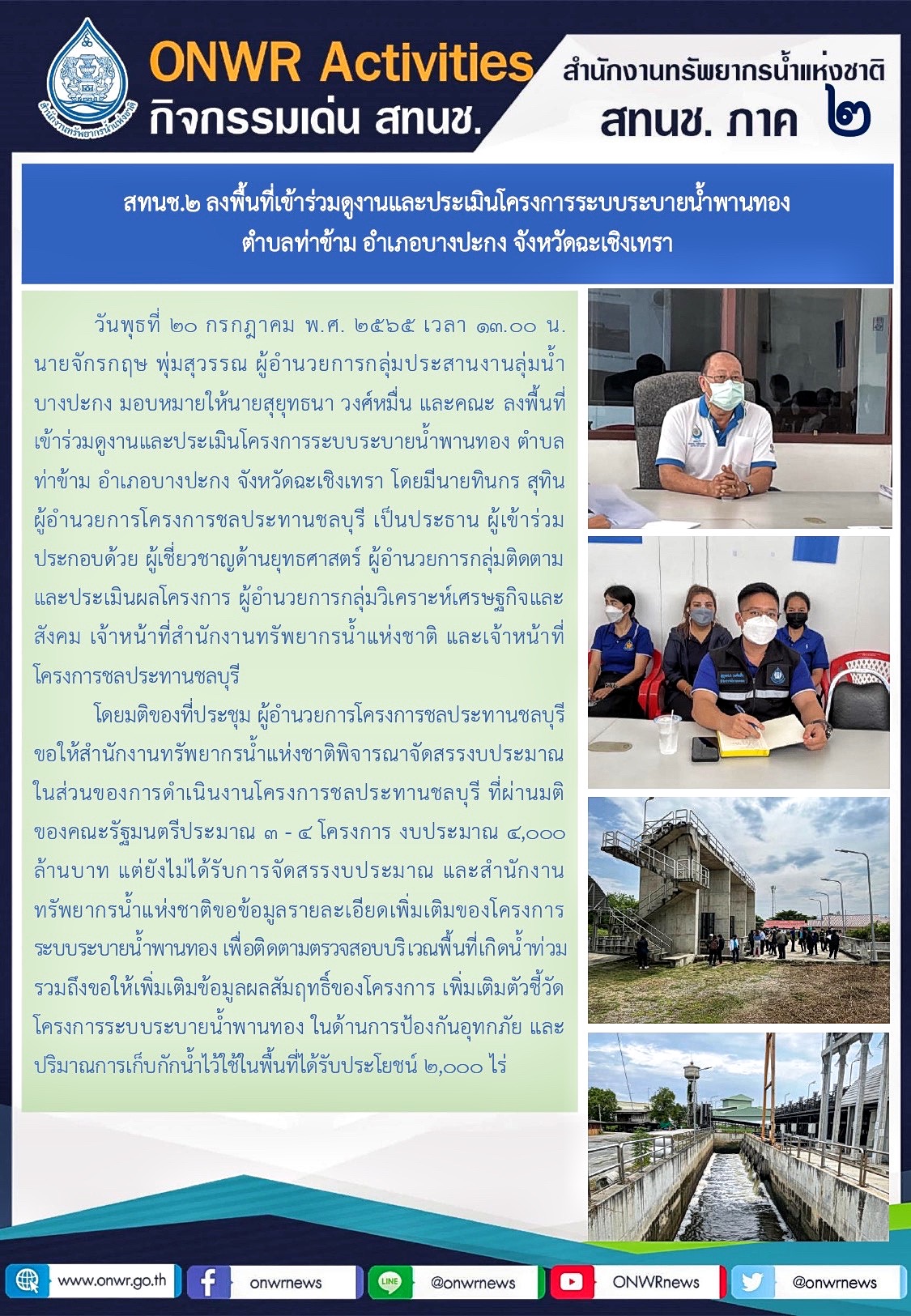 การลงพื้นที่เข้าร่วมดูงานและประเมินโครงการระบบระบายน้ำพานทอง ตำบลท่าข้าม อำเภอบางปะกง จังหวัดฉะเชิงเทรา 21 กรกฎาคม 2022 by ชลธิชา