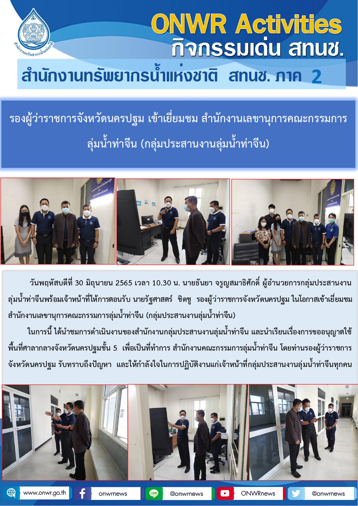 30 มิ.ย. ที่ผ่านมา รองผู้ว่าราชการจังหวัดนครปฐม เข้าเยี่ยมชมสำนักงานเลขานุการคณะกรรมการลุ่มน้ำท่าจีน 3 กรกฎาคม 2022 by ชลธิชา