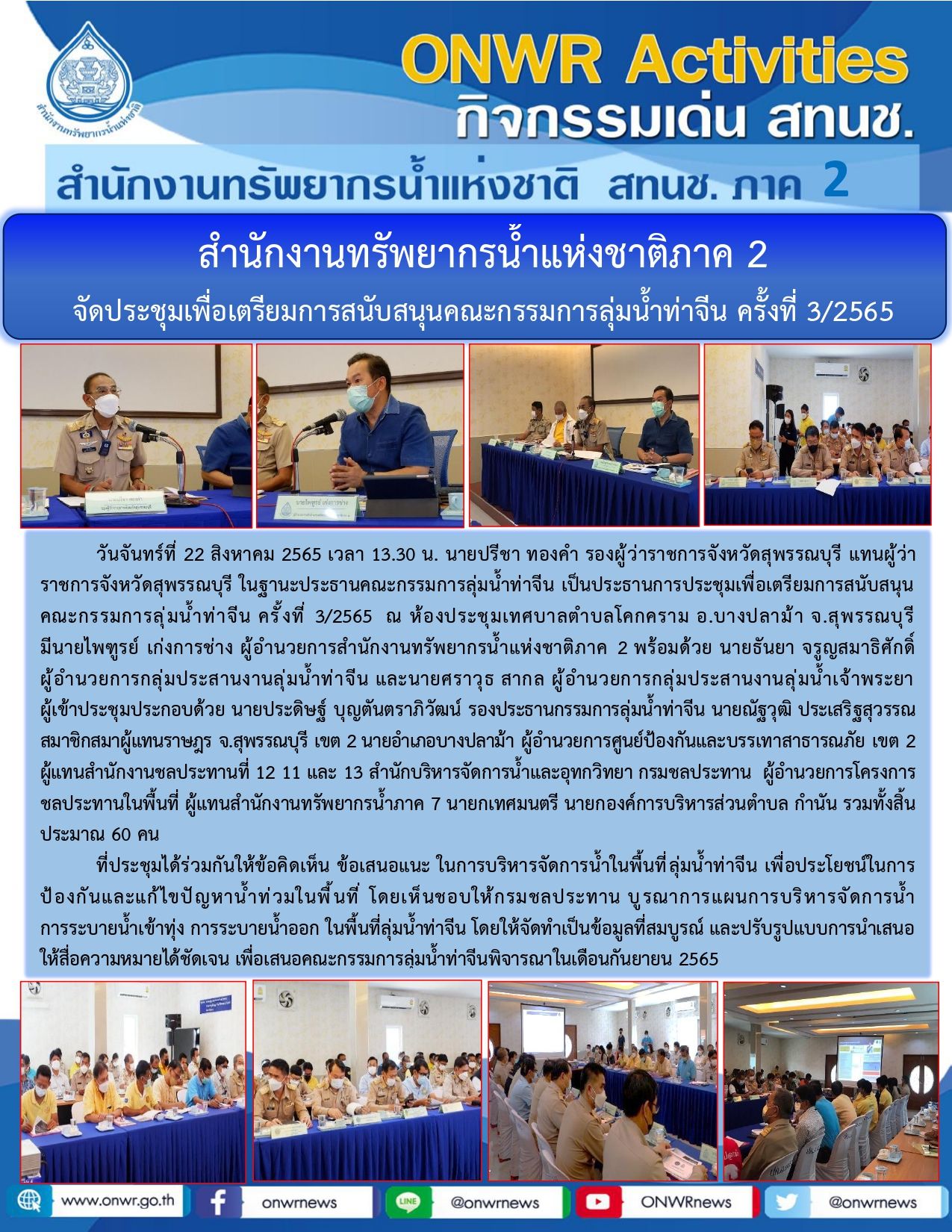 สทนช.2 จัดประชุมเพื่อเตรียมการสนับสนุนคณะกรรมการลุ่มน้ำท่าจีน ครั้งที่ 3/2565 ณ จังหวัดสุพรรณบุรี 24 สิงหาคม 2022 by ชลธิชา