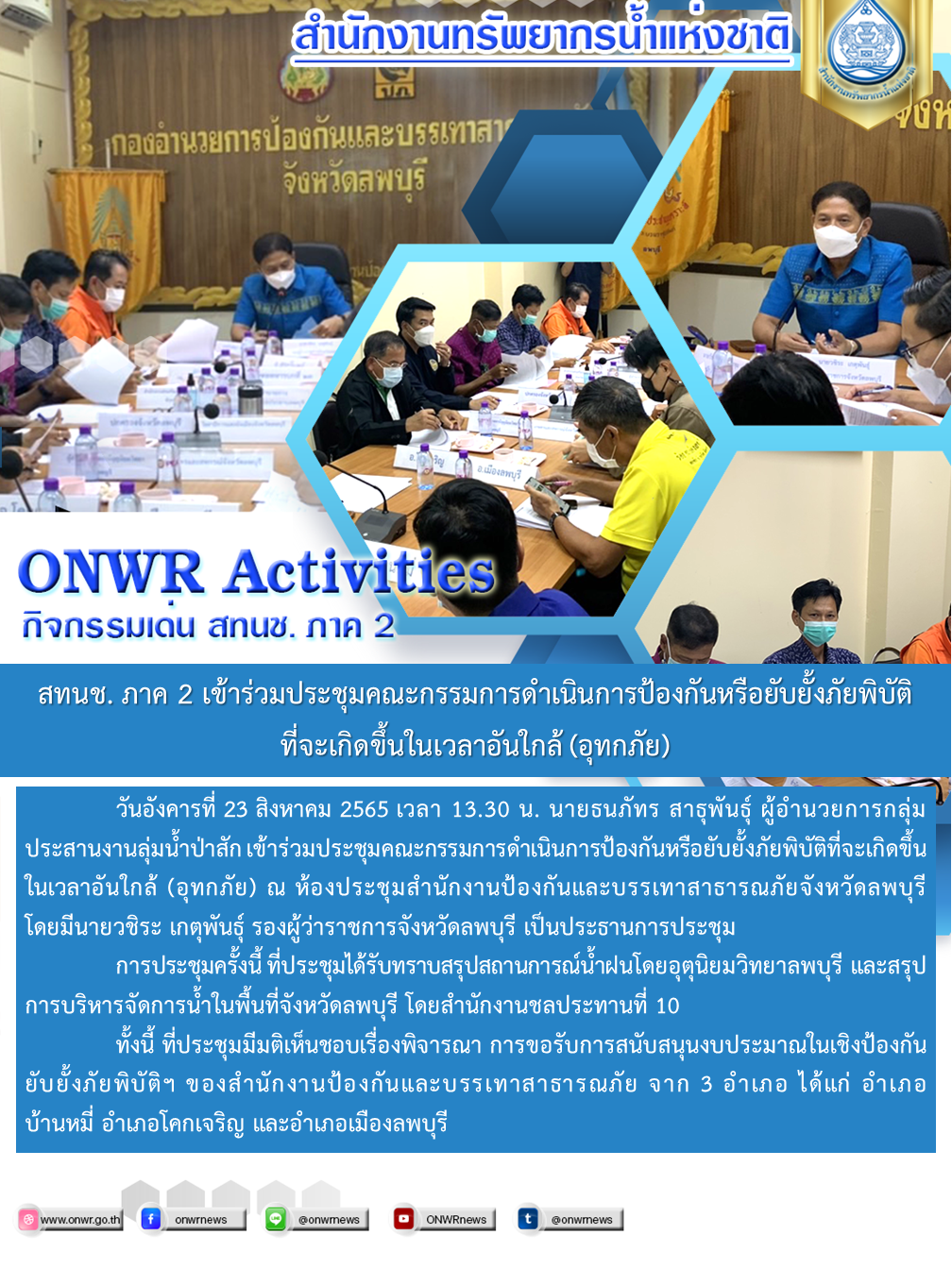 กปน.ป่าสัก เข้าร่วมประชุมคณะกรรมการดำเนินการป้องกันหรือยับยั้งภัยพิบัติที่จะเกิดขึ้นในเวลาอันใกล้ (อุทกภัย) 24 สิงหาคม 2022 by ชลธิชา เมฆนิล