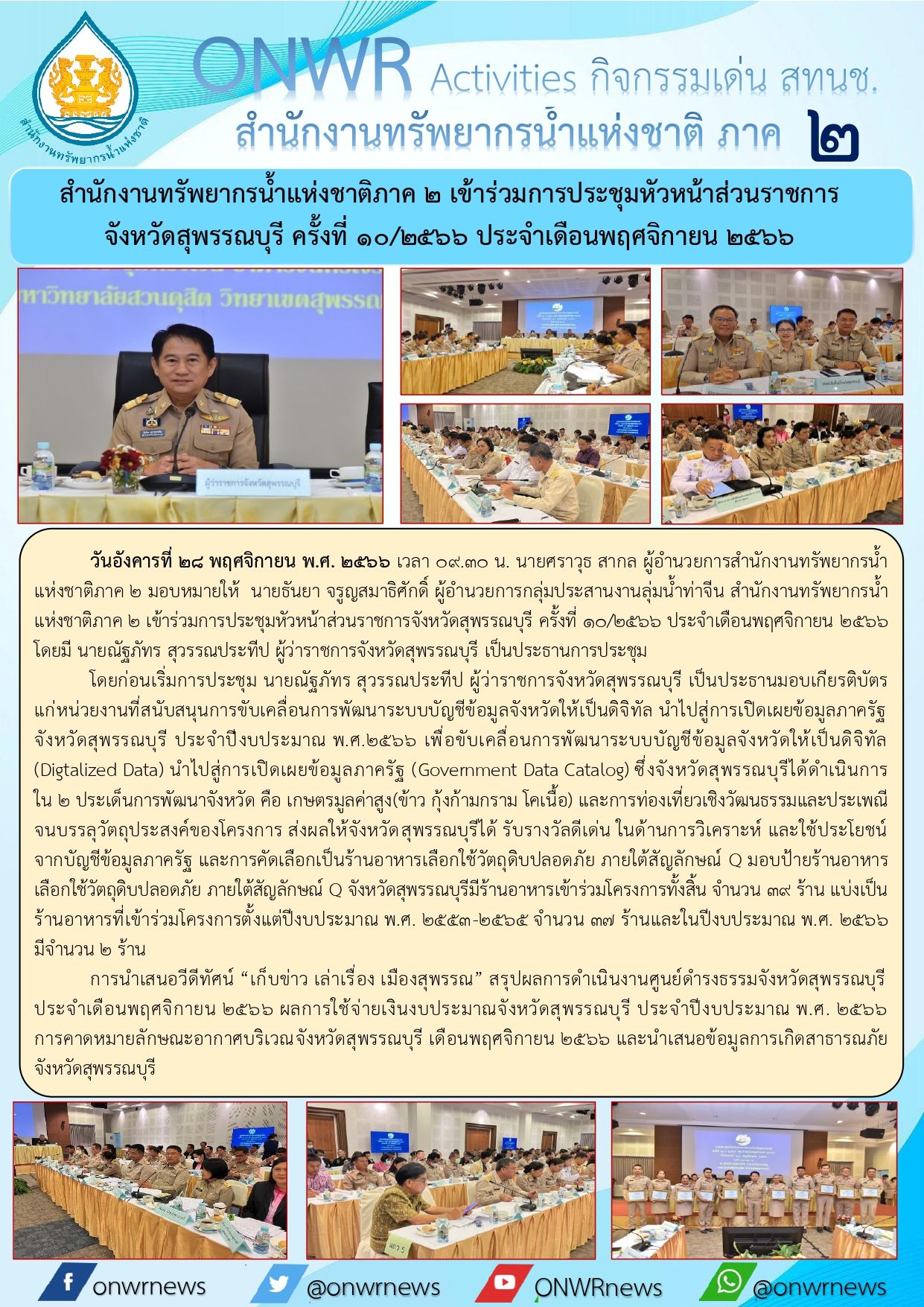 สทนช.2 เข้าร่วมการประชุมหังหน้าส่วนราชการ จังหวัดสุพรรบุรี ครั้งที่ 10/2566 ประจำเดือนพฤจิกายน 2566 29 พฤศจิกายน 2023 by ปวีณา ประกอบพันธ์