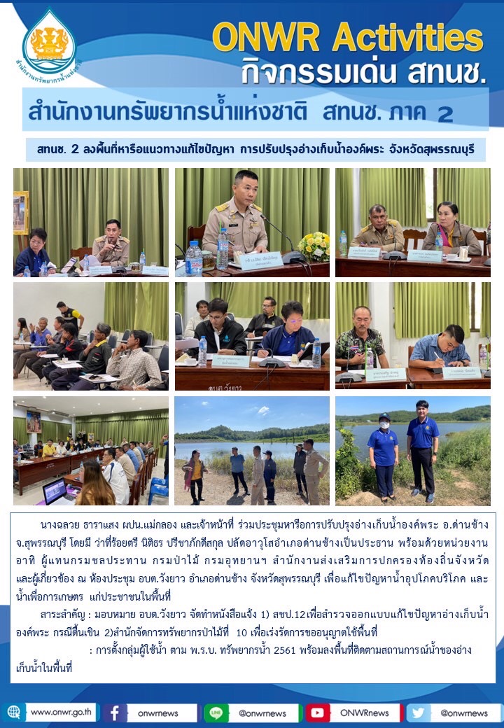 สทนช.2 ลงพื้นที่หารือแนวทางแก้ไขปัญหา การปรับปรุงอ่างเก็บน้ำองค์พระ จังหวัดสุพรรณบุรี 23 พฤศจิกายน 2023 by ปวีณา ประกอบพันธ์