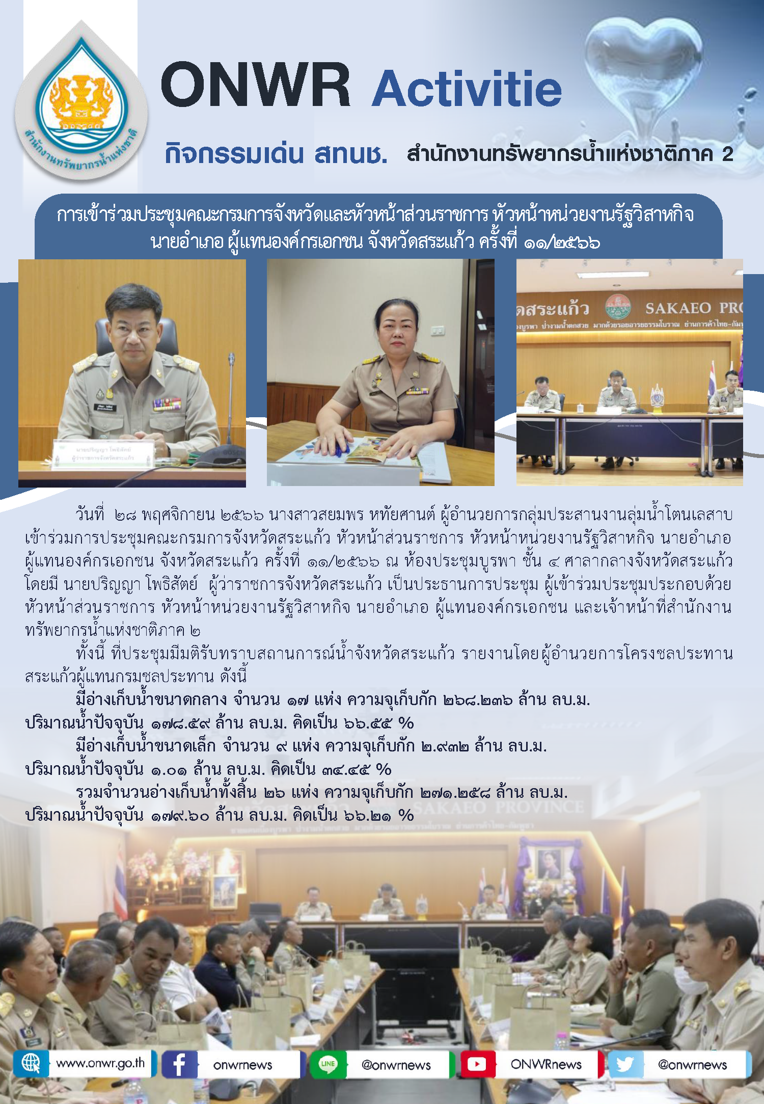 สทนช. 2 การเข้าร่วมประชุมคณะกรรมการจังหวัดและหัวหน้าส่วนราชการ หัวหน้าหน่วยงานรัฐวิสาหกิจ นายอำเภอ ผู้แทนองค์กรเอกชน จังหวัดสระแก้ว ครั้งที่ 11/2566 30 พฤศจิกายน 2023 by ปวีณา ประกอบพันธ์