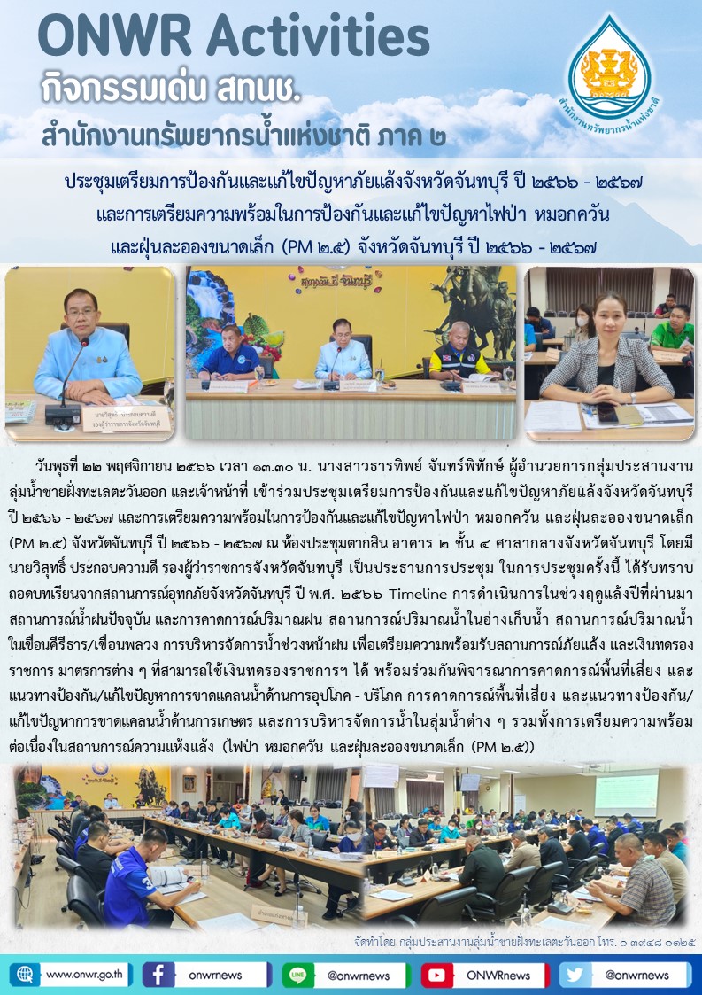 สทนช.2 ประชุมเตรียมการป้องกันและแก้ไขปัญหาภัยแล้งจังหวัดจันทบุรี ปี 2566-2567 23 พฤศจิกายน 2023 by ปวีณา ประกอบพันธ์