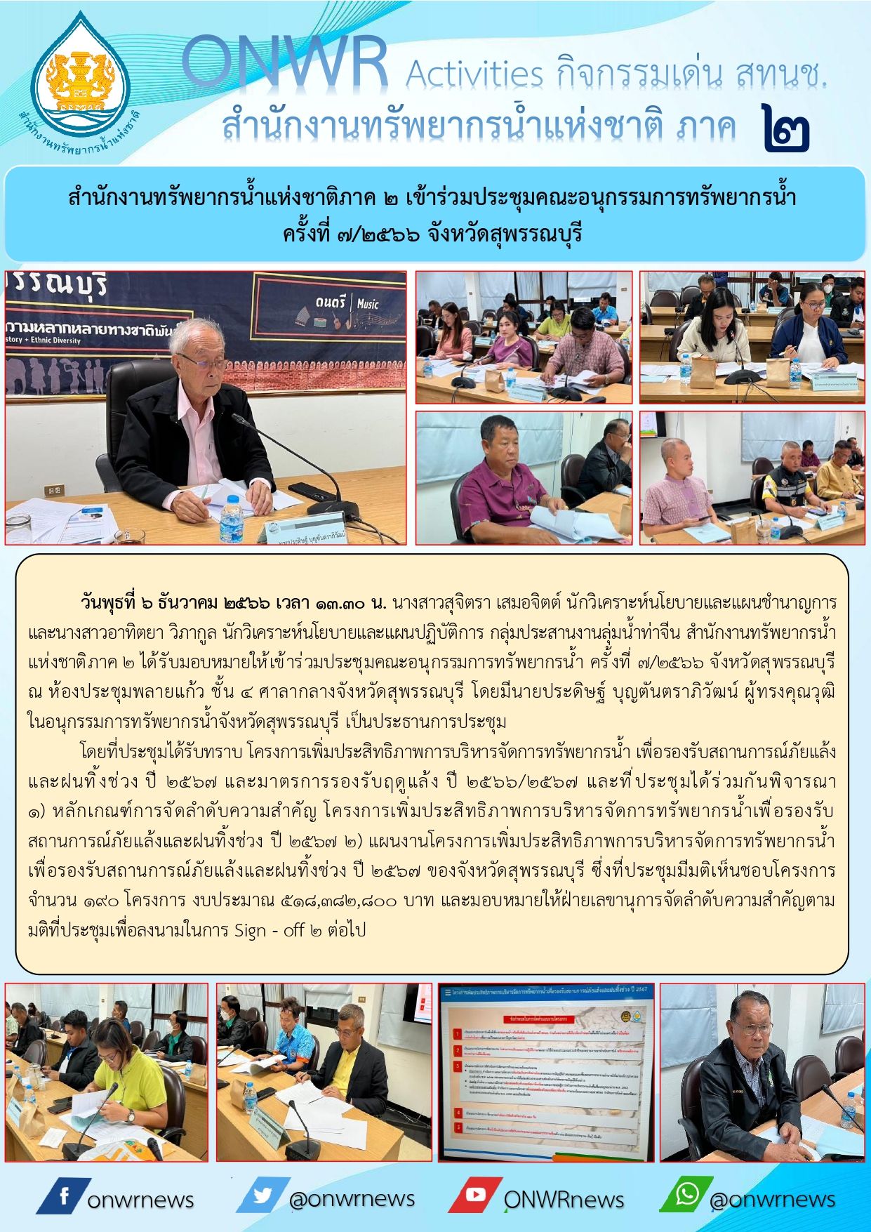 สทนช.2 เข้าร่วมประชุมคณะอนุกรรมการทรัพยากรน้ำ ครั้งที่ 7/2566 จังหวัดสุพรรณบุรี 7 ธันวาคม 2023 by ปวีณา ประกอบพันธ์