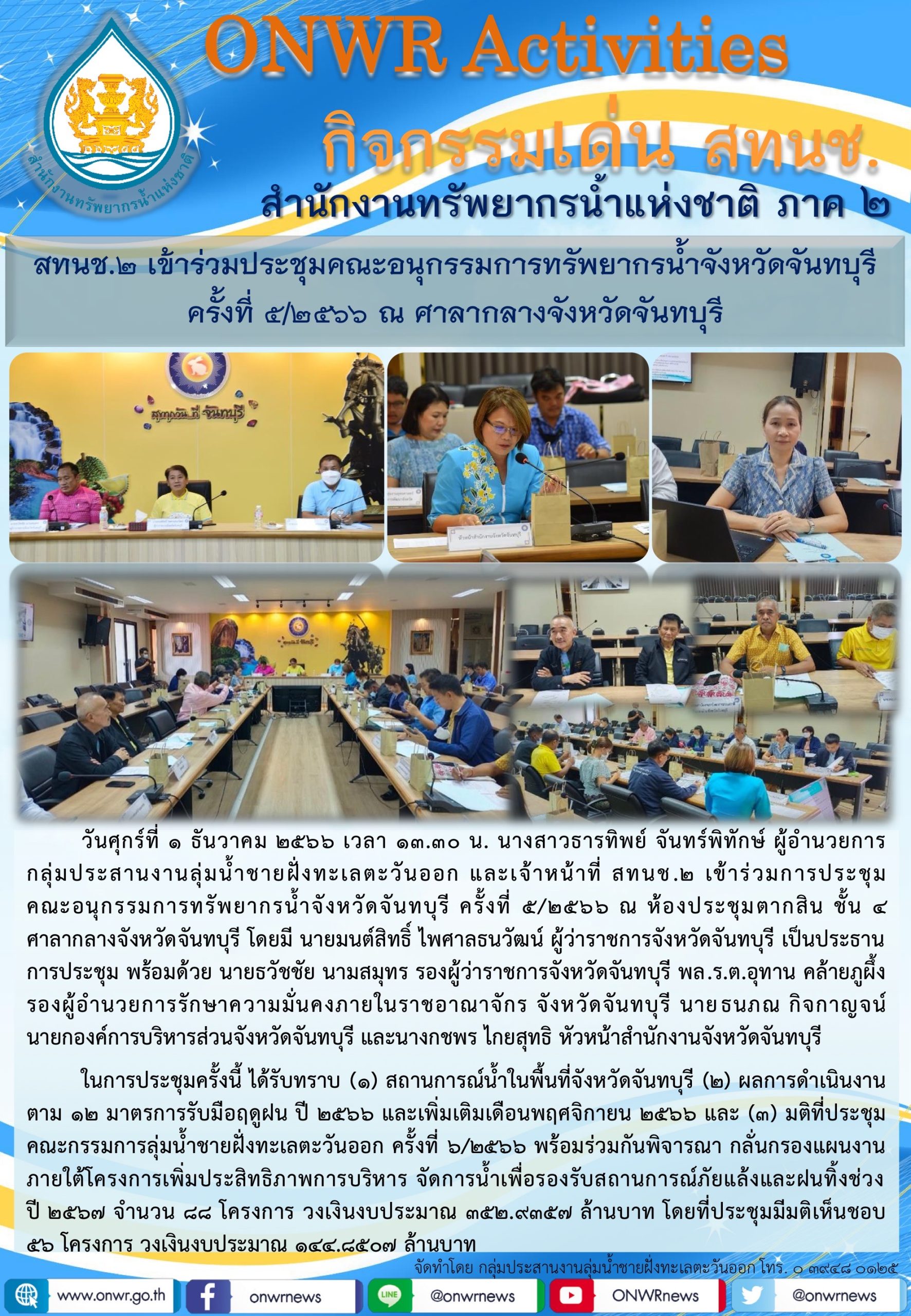 สทนช. 2 เข้าร่วมประชุมคณะอนุกรรมการทรัพยากรน้ำ จังหวัดจันทบุรี ครั้งที่ 5/2566 4 ธันวาคม 2023 by ปวีณา ประกอบพันธ์