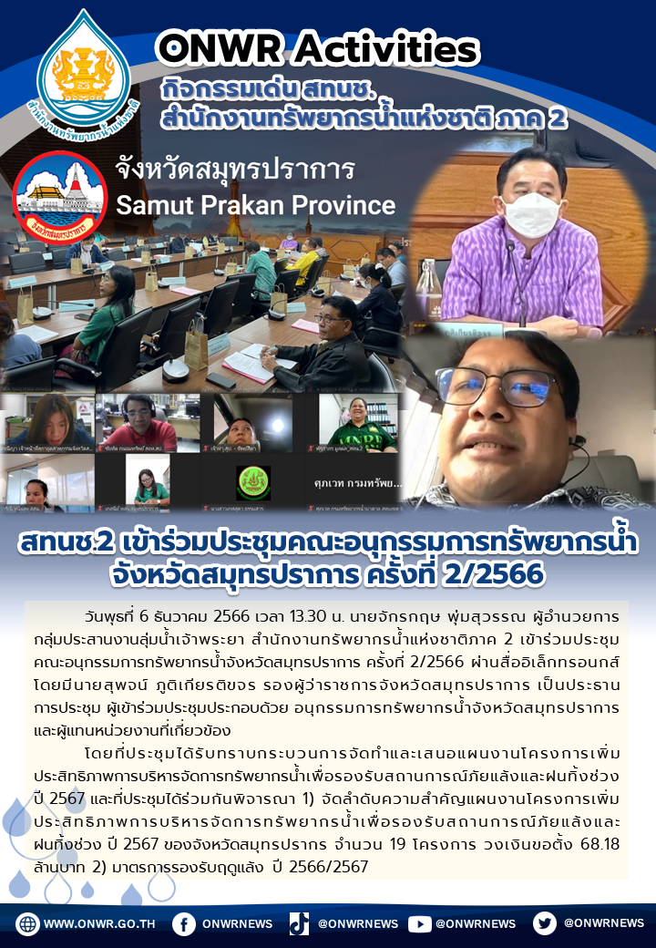 สทนช.2 เข้าร่วมประชุมคณะอนุกรรมการทรัพยากรน้ำ จังหวัดสมุทรปราการ ครั้งที่2//2566 7 ธันวาคม 2023 by ปวีณา ประกอบพันธ์
