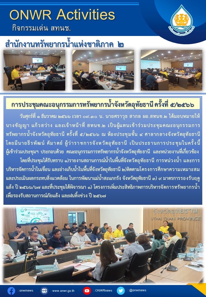 สทนช.2 เข้าร่วมประชุมคณะอนุกรรมการทรัพยากรน้ำจังหวัดอุทัยธานี ครั้งที่ 5/2566 4 ธันวาคม 2023 by ปวีณา ประกอบพันธ์