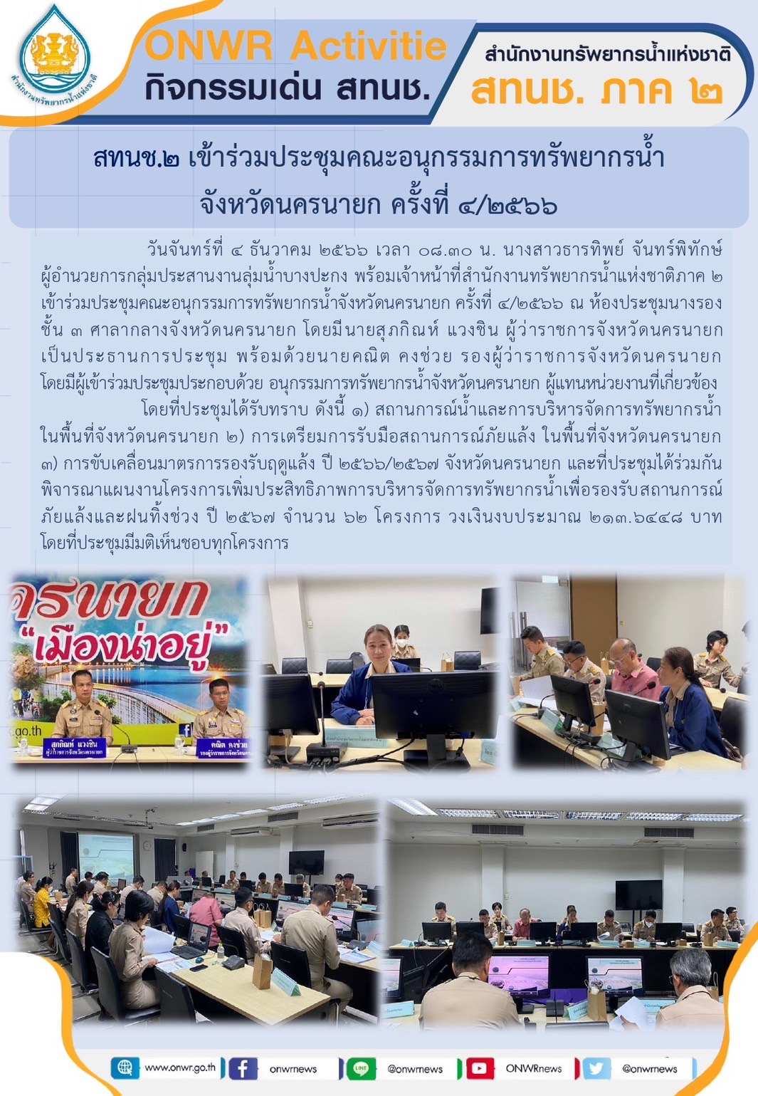 สทนช.2 เข้าร่วมประชุมคณะอนุกรรมการทรัพยากรน้ำจังหวัดนครนายก ครั้งที่ 4/2566 6 ธันวาคม 2023 by ปวีณา ประกอบพันธ์