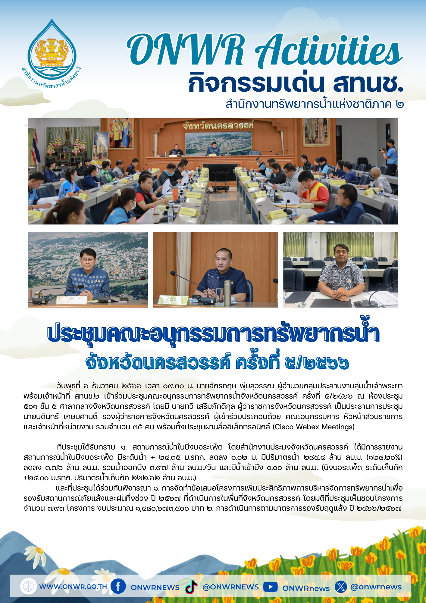 สทนช.2 เข้าร่วมประชุมคณะอนุกรรมการทรัพยากรน้ำ จังหวัดนครสวรรค์ ครั้งที่ 5/2566 7 ธันวาคม 2023 by ปวีณา ประกอบพันธ์