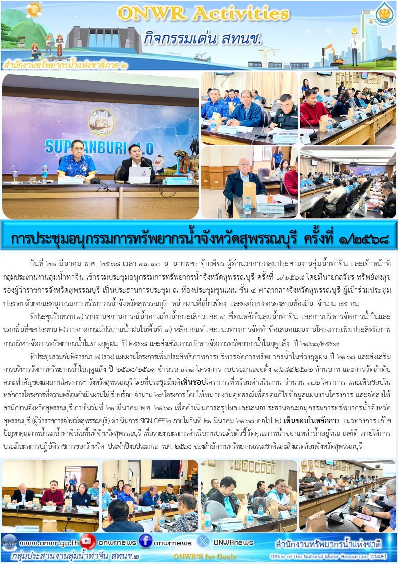 สทนช.2 เข้าร่วมประชุมอนุกรรมการทรัพยากรน้ำจังหวัดสุพรรณบุรี ครั้งที่1/2568 24 มีนาคม 2025 by ปวีณา ประกอบพันธ์