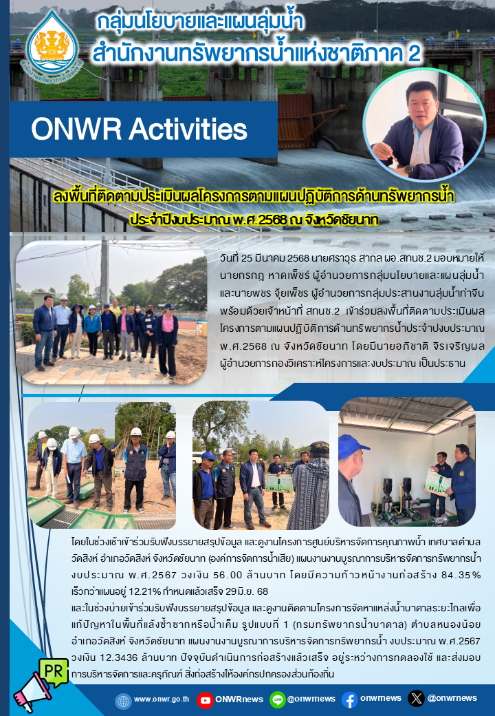 สทนช.2 ลงพื้นที่ติดตามประเมินผลโครงการตามแผนปฏิบัติการด้านทรัพยากรน้ำ ประจำปีงบประมาณ พ.ศ.2568 จังหวัดชัยนาท 31 มีนาคม 202531 มีนาคม 2025 by ปวีณา ประกอบพันธ์