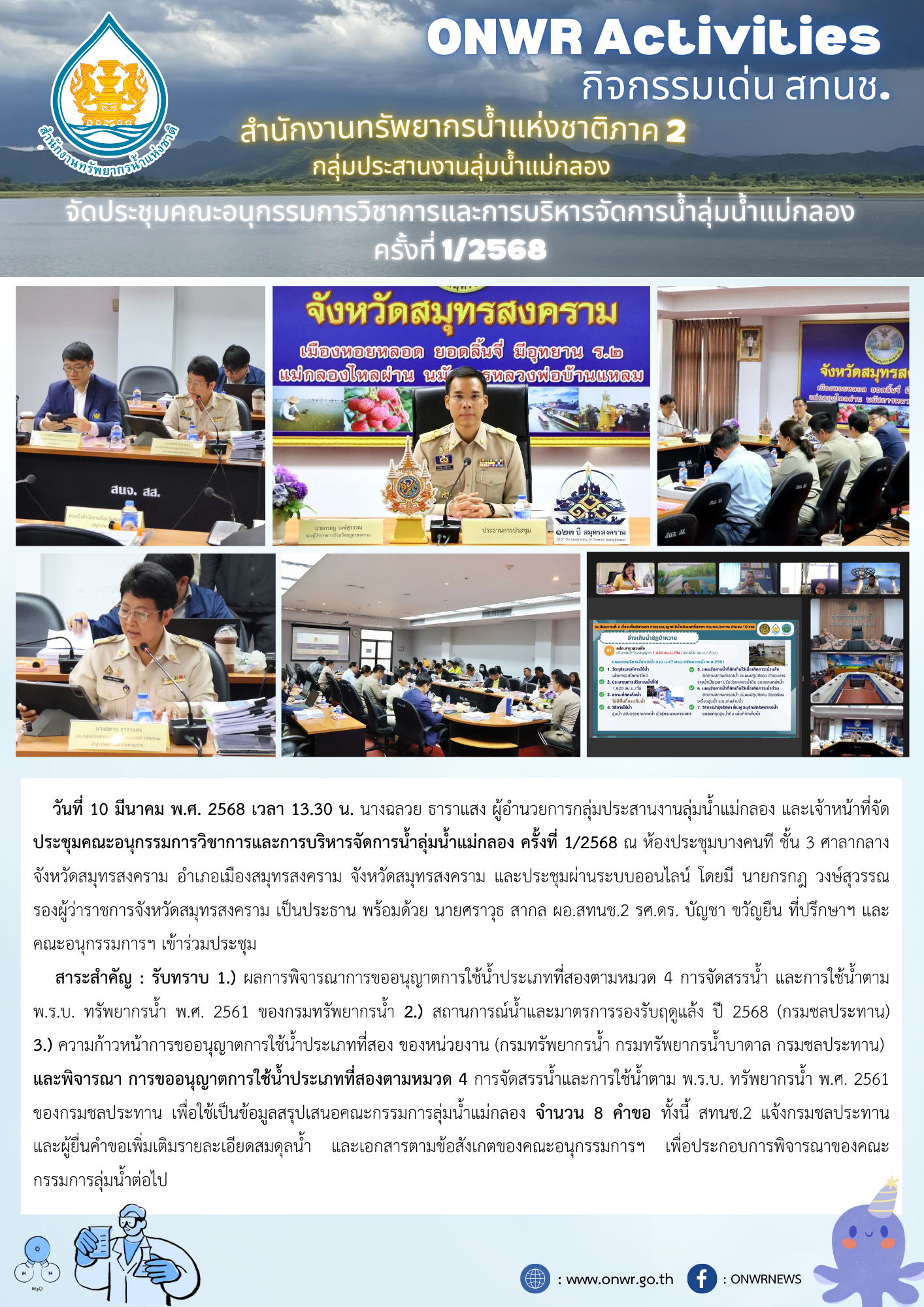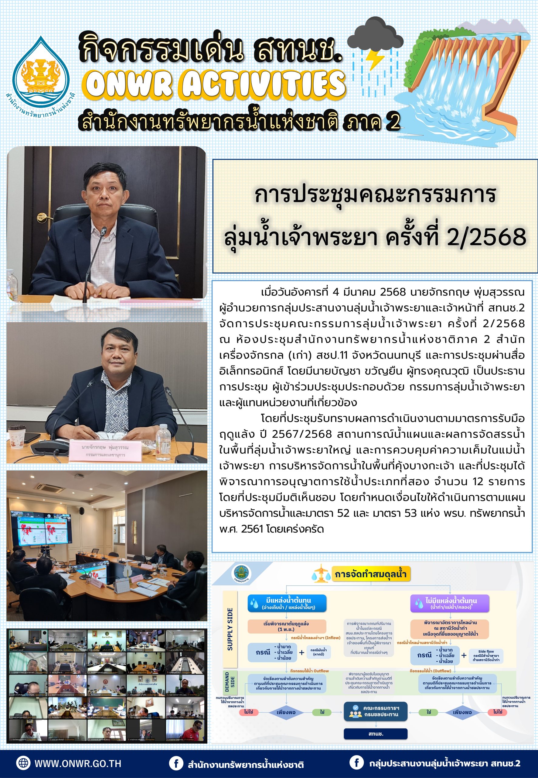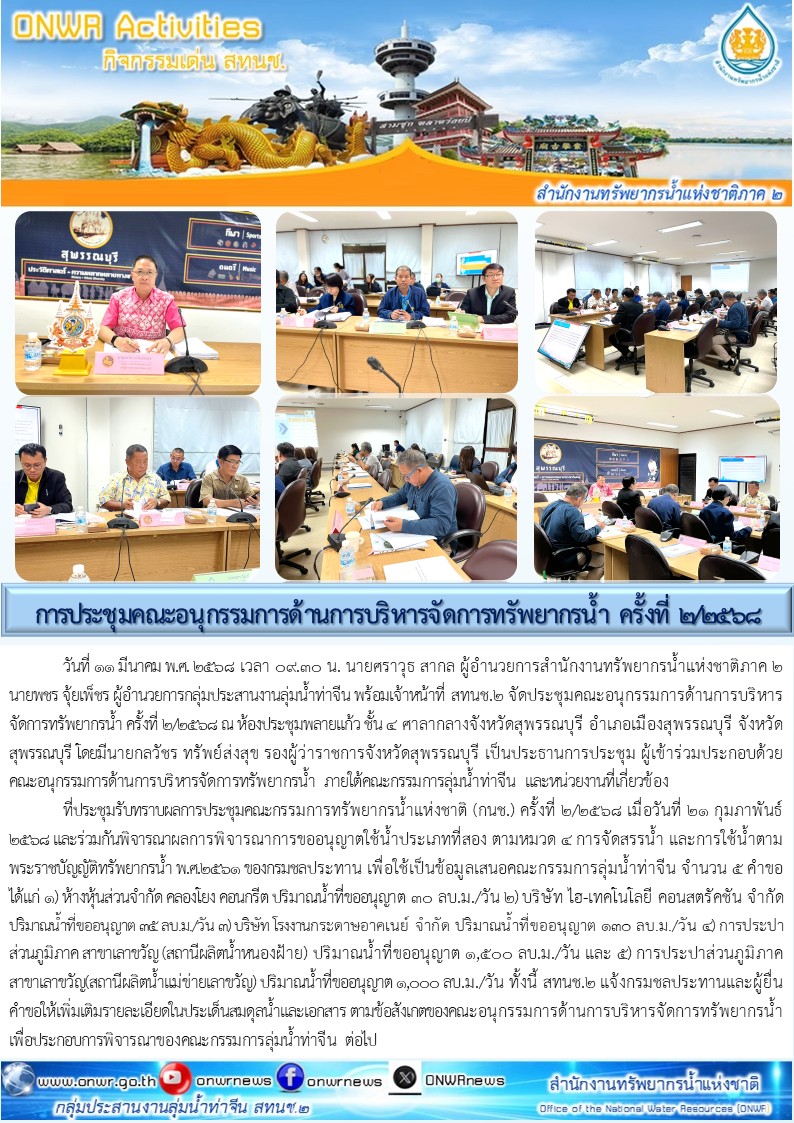 สทนช.2 จัดประชุมคณะอนุกรรมการด้านการบริหารจัดการทรัพยากรน้ำ ครั้งที่2/2568 12 มีนาคม 2025 by ปวีณา ประกอบพันธ์