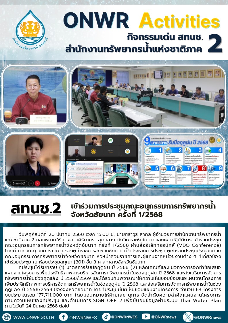 สทนช.2 เข้าร่วมการประชุมคณะอนุกรรมการทรัพยากรน้ำจังหวัดชัยนาท ครั้งที่1/2568 24 มีนาคม 2025 by ปวีณา ประกอบพันธ์