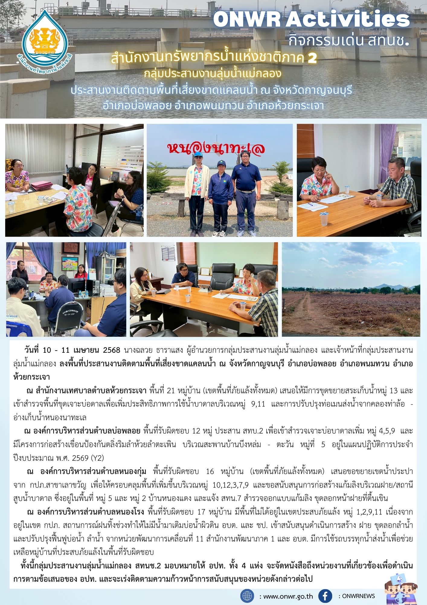 สทนช.2 ลงพื้นที่เสี่ยงขาดแคลนน้ำ อ.บ่อพลอย อ.พนมทวนและอ.ห้วยกระเจา จ.กาญจนนบุรี 23 เมษายน 2025 by ปวีณา ประกอบพันธ์