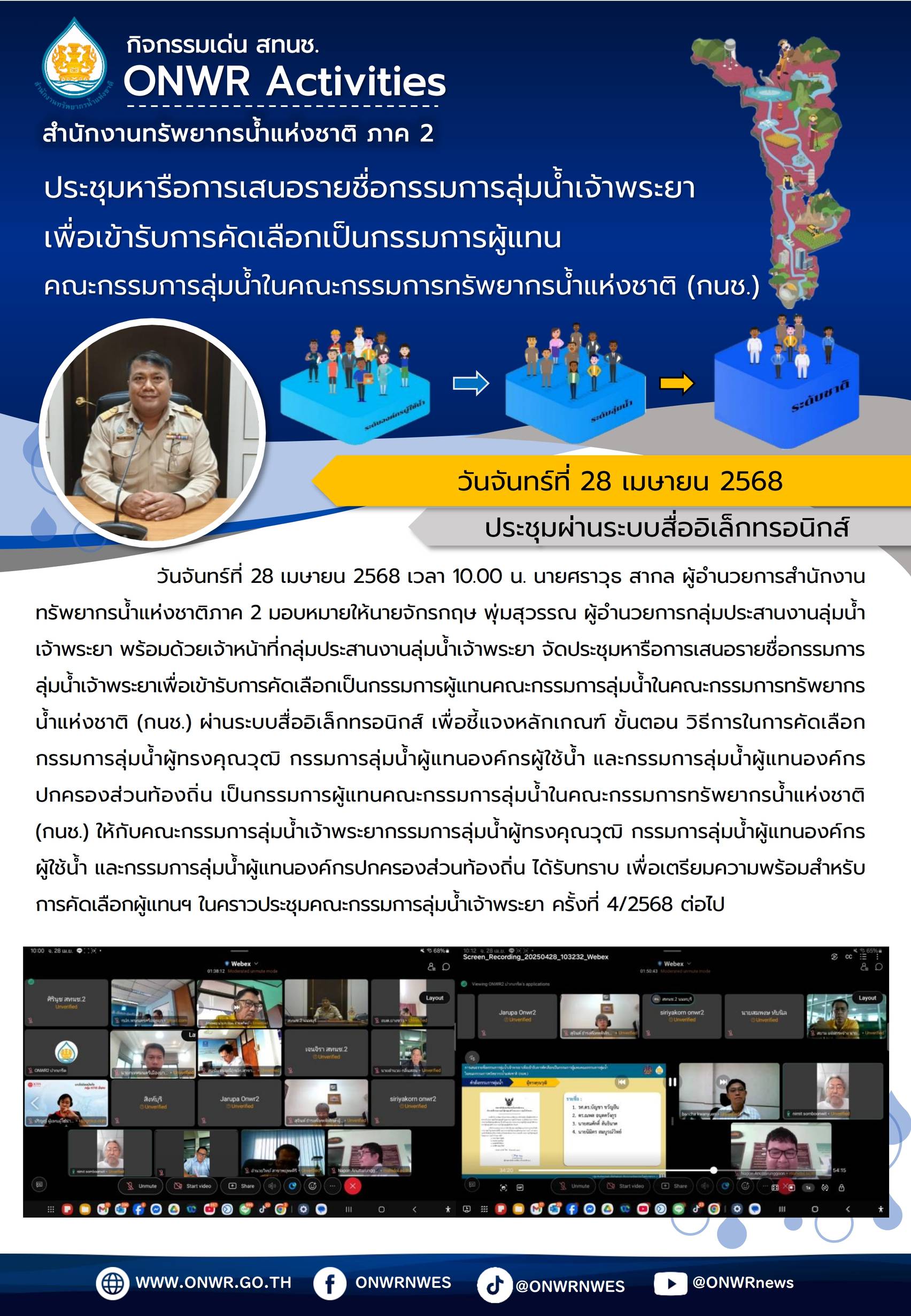 สทนช.2 จัดประชุมหารือการเสนอรายชื่อกรรมการลุ่มน้ำเจ้าพระยาเพื่อเข้ารับการคัดเลือกเป็นกรรมการผู้แทนคณะกรรมการลุ่มน้ำในคณะกรรมการทรัพยากรน้ำแห่งชาติ (กนช.) 29 เมษายน 2025 by ปวีณา ประกอบพันธ์
