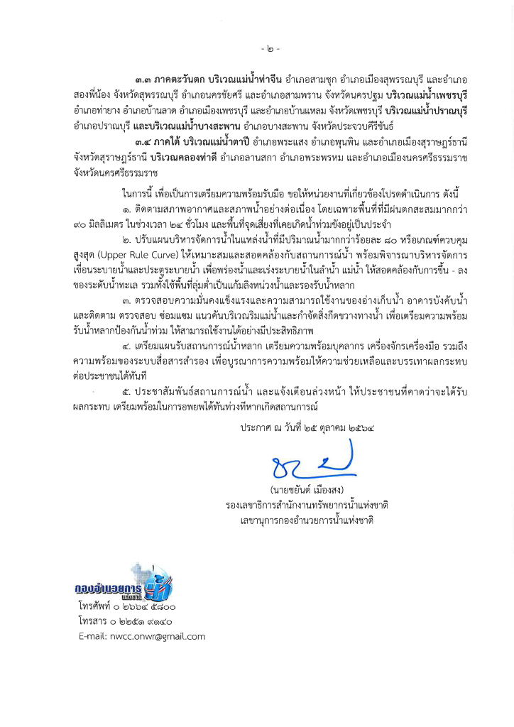 ประกาศ กอนช. ฉบับที่ 25 เรื่อง เฝ้าระวังพื้นที่เสี่ยงน้ำหลาก ดินถล่ม น้ำล้นอ่างเก็บน้ำ และน้ำล้นตลิ่ง ช่วงวันที่ 28 ต.ค. – 3 พ.ย.นี้ 26 ตุลาคม 2021 by ธนภัทร ประกาศ กองอำนวยการน้ำแห่งชาติฉบับที่ 25/2564เรื่อง เฝ้าระวังพื้นที่เสี่ยงน้ำหลาก ดินถล่ม น้ำล้นอ่างเก็บน้ำ และน้ำล้นตลิ่ง