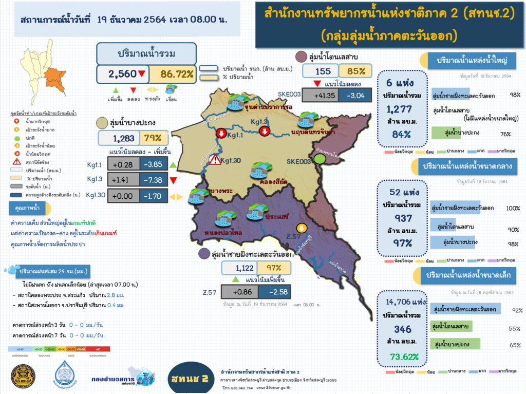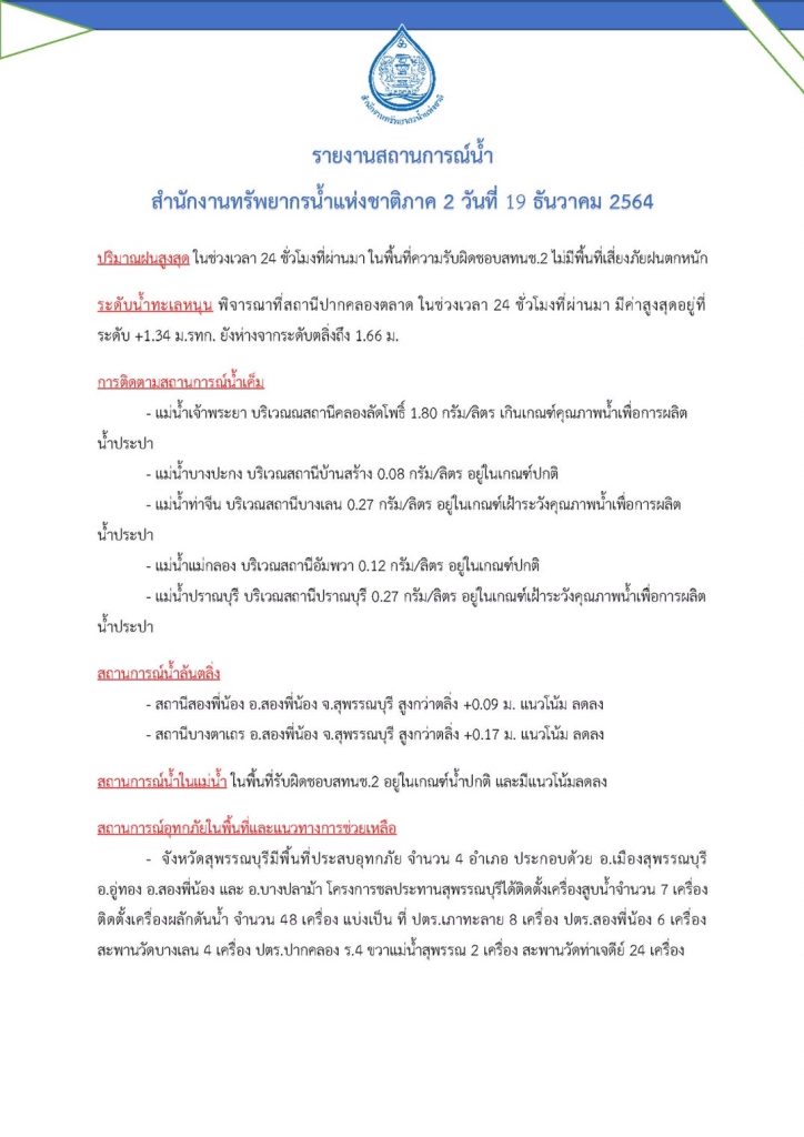 รายงานสถานการณ์น้ำ วันที่ 19 ธันวาคม 2564