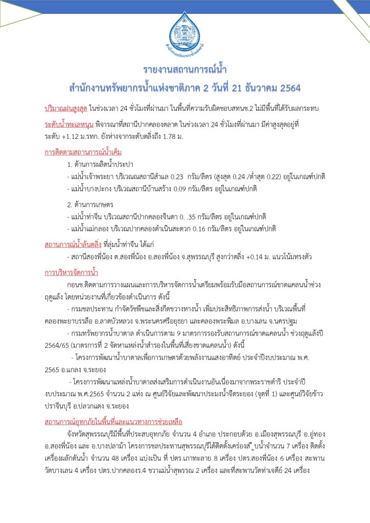 รายงานสถานการณ์น้ำ วันที่ 21 ธันวาคม 2564