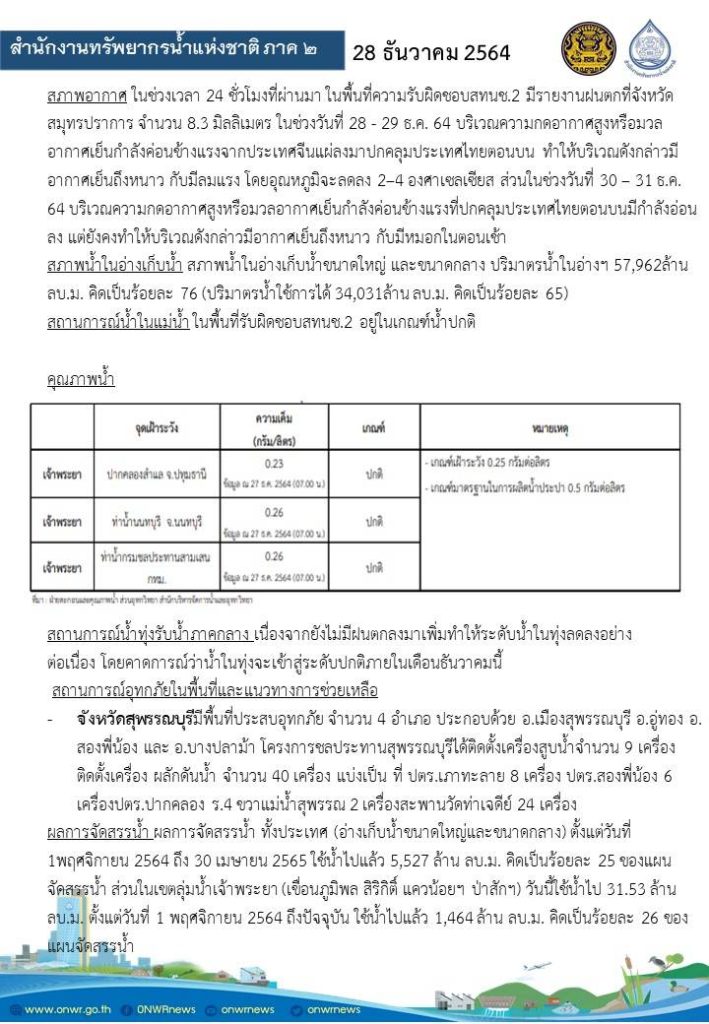 รายงานสถานการณ์น้ำ วันที่ 28 ธันวาคม 2564