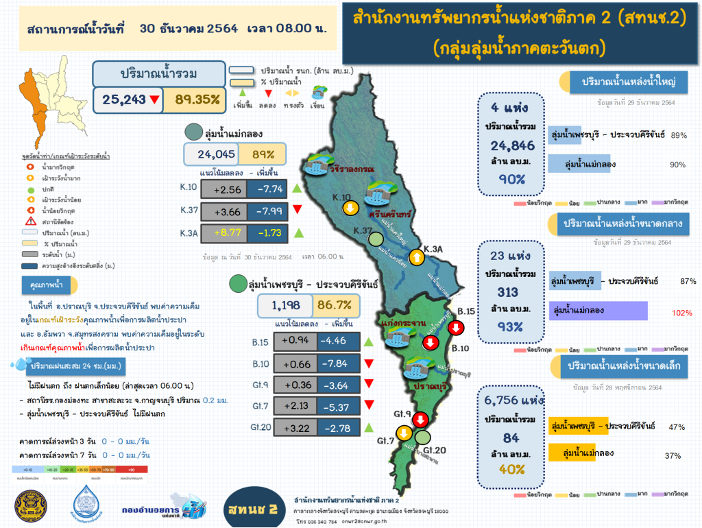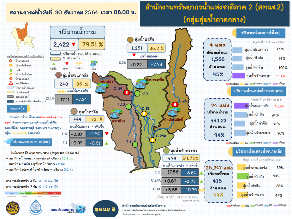 รายงานสถานการณ์น้ำ วันที่ 30 ธันวาคม 2564